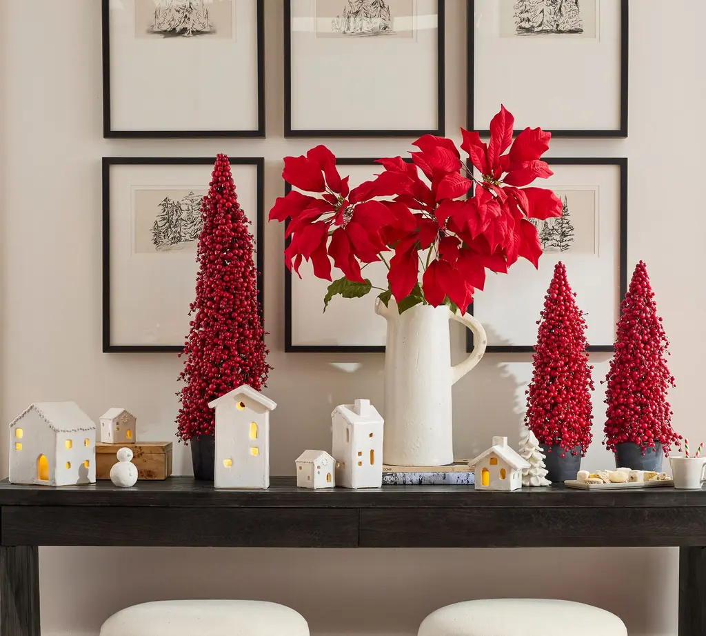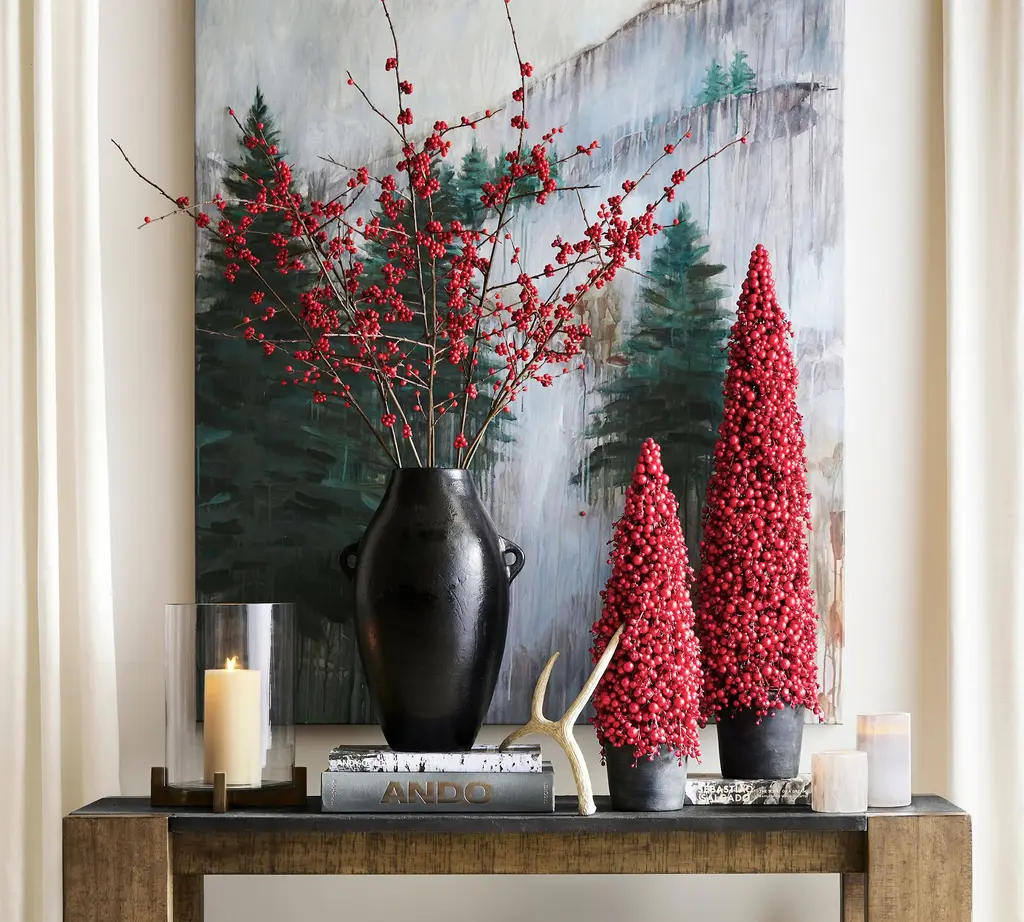 Capturing the vibrant luster of red pepperberries, our faux tree makes a striking, modern accent for the holidays. Artisans assemble it by hand, rooting it in a terracotta pot with a rich, hand-rubbed finish. Place it on a mantel, console, or stair landing – or in a sheltered area outside.