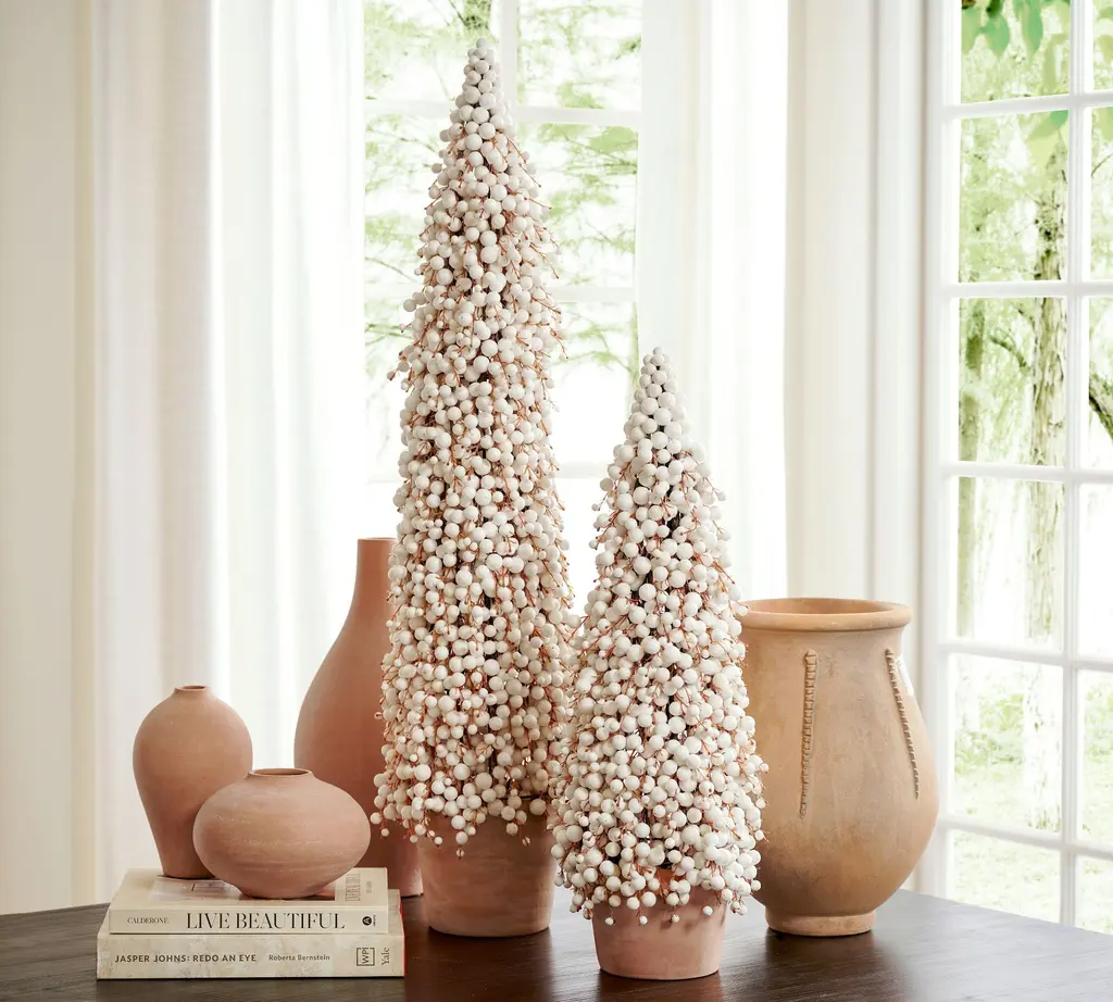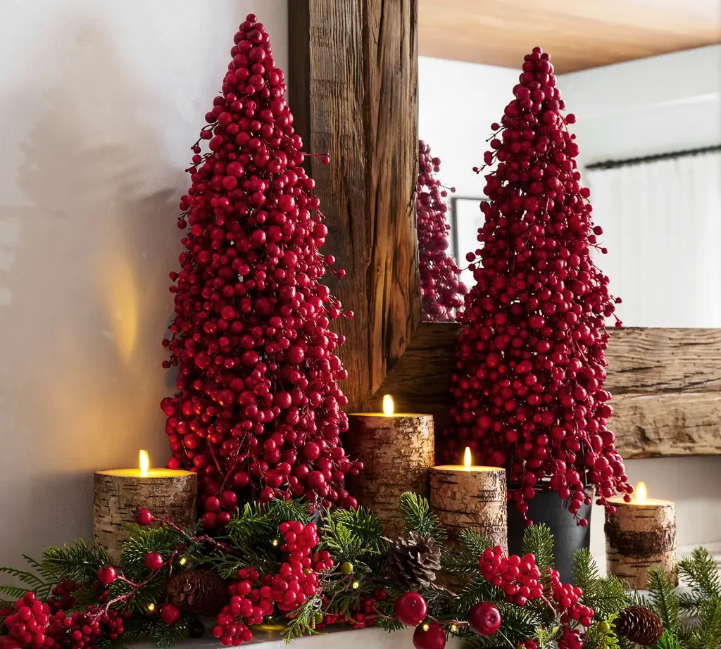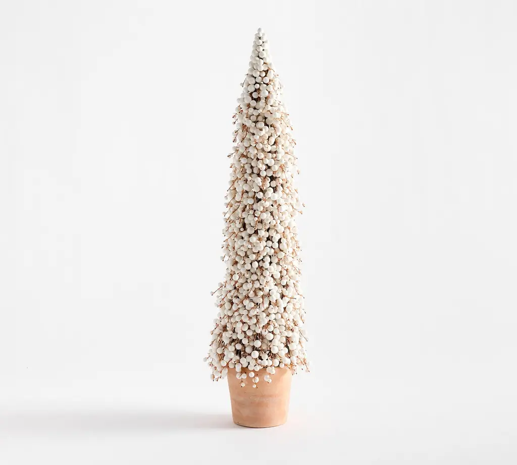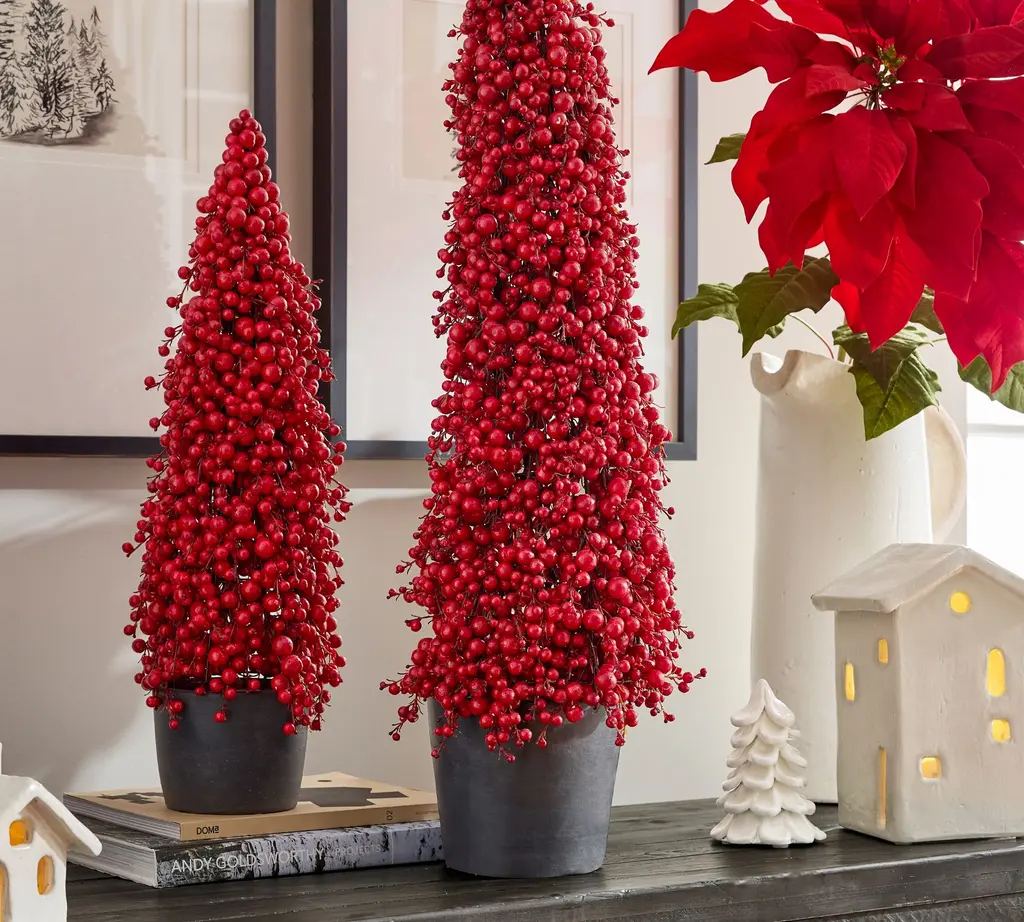 Faux Potted Berry Cluster Cone Trees