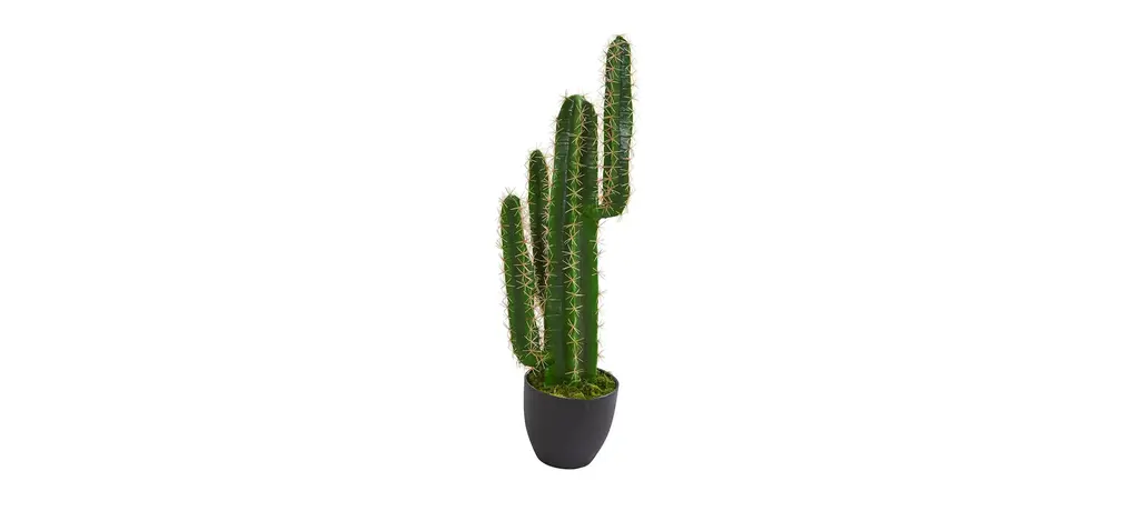 Requiring zero care, forever-green cactus plant adds a bit of depth and a southwestern touch to low-light spaces. Potted in a black plastic container, faux cactus is ready to drop into a planter of your choice. CB2 exclusive.