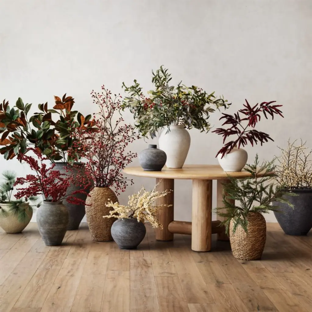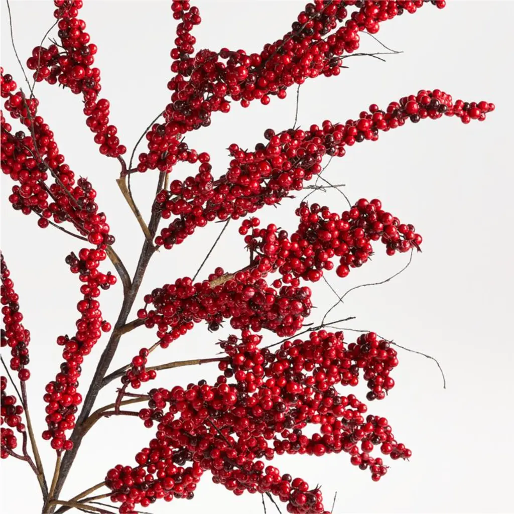 Clusters of tiny red berries dot this delightfully realistic faux stem. Lovely popped in a clear glass or ceramic vase, the fool-the-eye branch decorates your holiday home with jewel-like color. The faux red berry stem is a Crate & Barrel exclusive.
