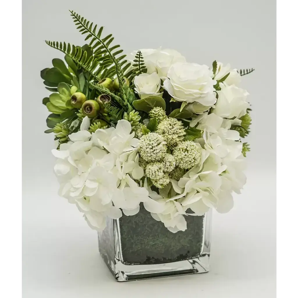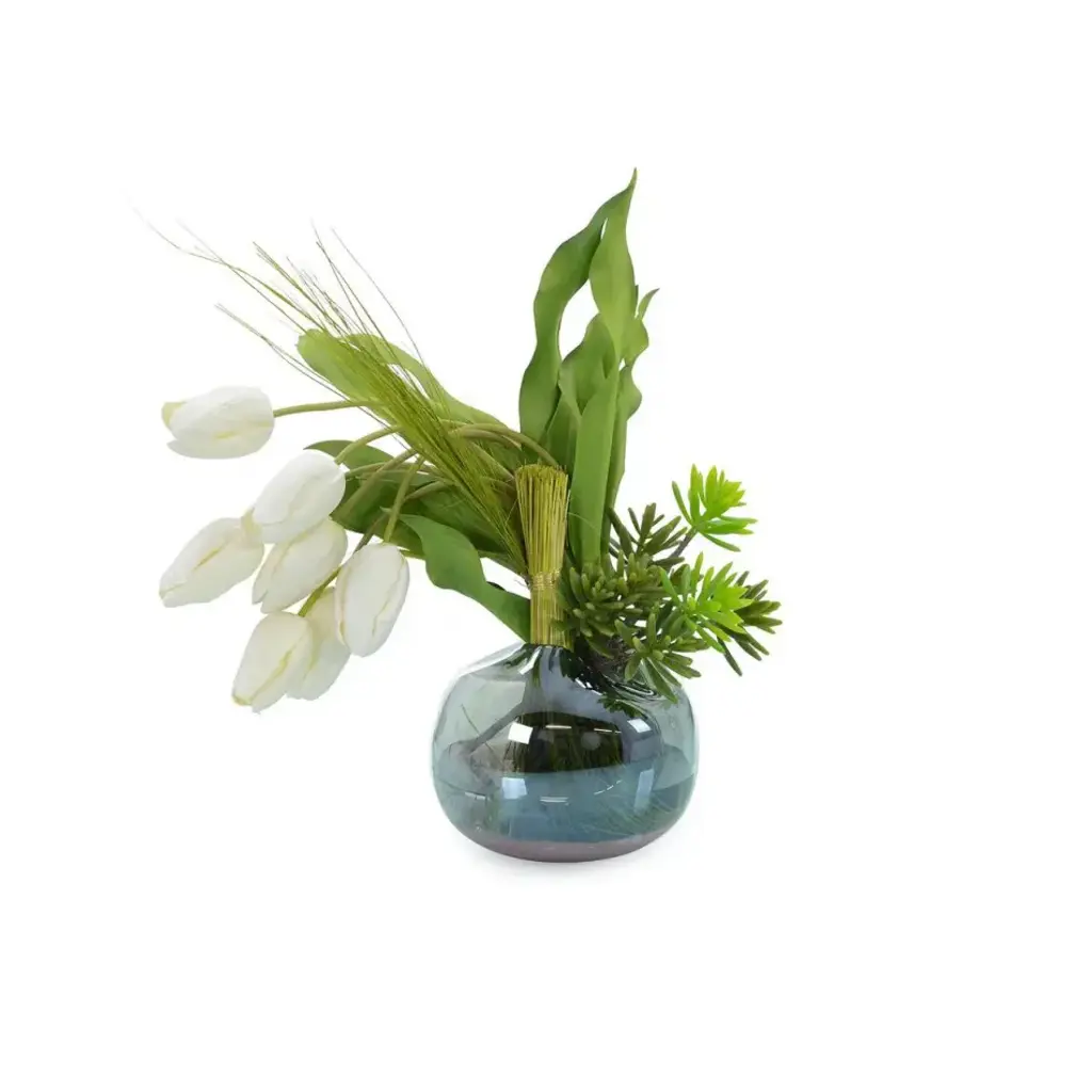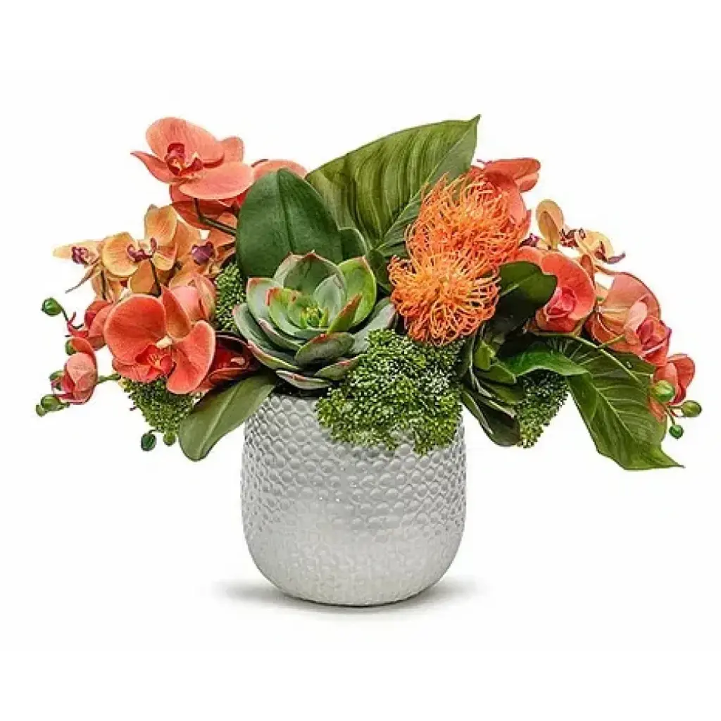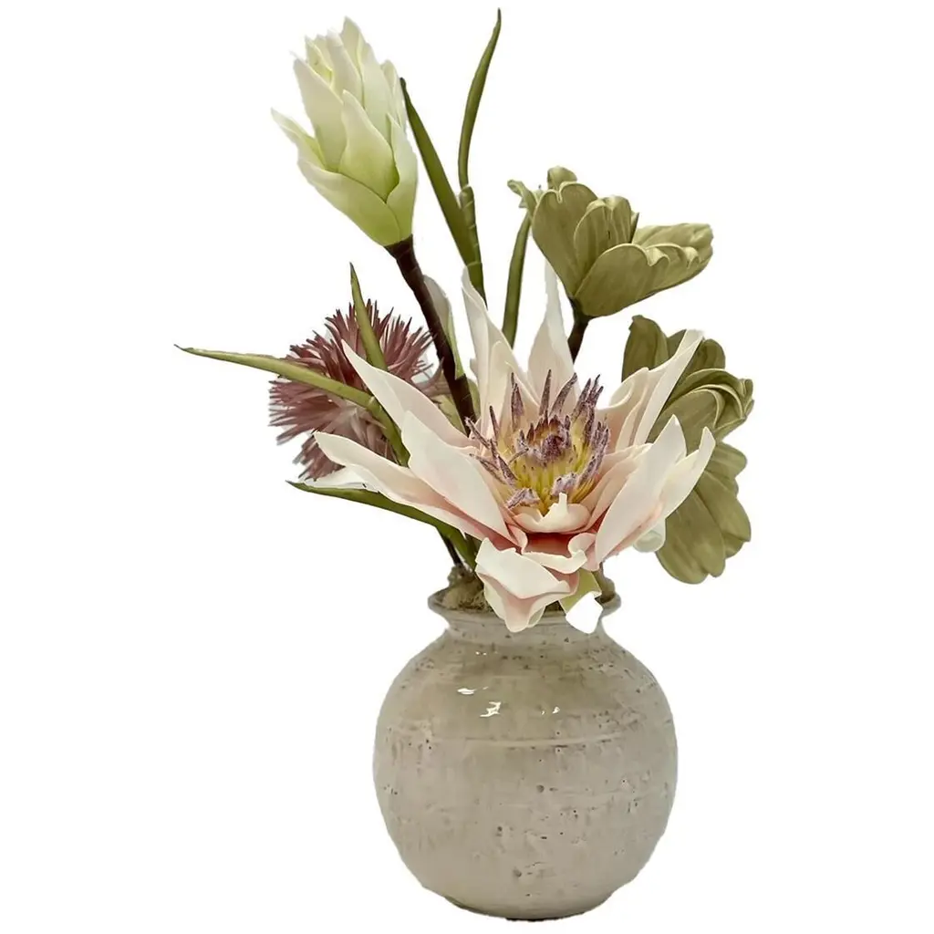 This lush arrangement gathers faux botanicals in red and green for a nature-inspired take on the classic Christmas palette. Designed by British floral designer Abigail Ahern, the Real Touch bunches of red anemone and peonies feature incredibly realistic texture and softness in true-to-life colors. Gorgeous faux cypress stems complement with flat sprays of dark green foliage. Display together in one impressive bouquet or separate into smaller bunches for fresh, seasonal color throughout the home.