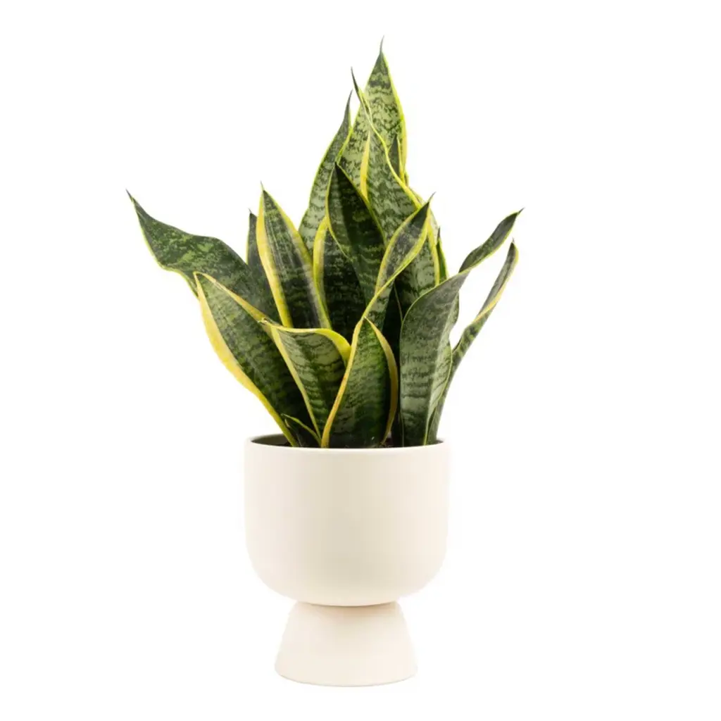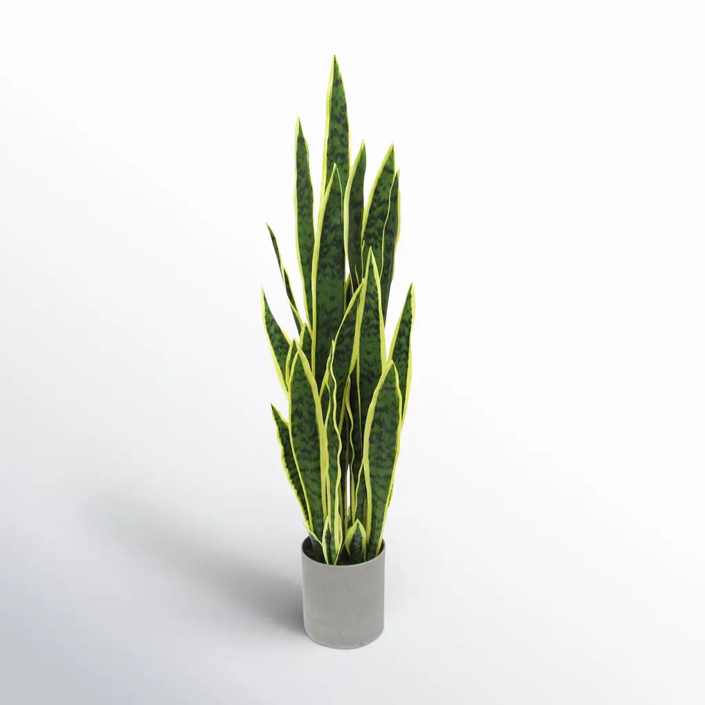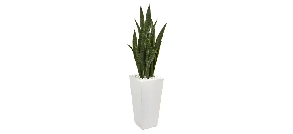 Snake plant's gorgeous sword-shaped leaves colored with mottled greens are brilliantly captured in this striking faux plant. Planted in a clean, contemporary white vase, the plant livens the room with tropical greenery.