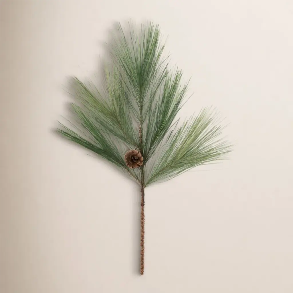 This delightfully realistic branch replicates the soft, fluffy needles of white pine. Pop one into a vase or mix it in with a holiday bouquet. Made with bendable wire, the stem can be shaped to look even more like the real thing.