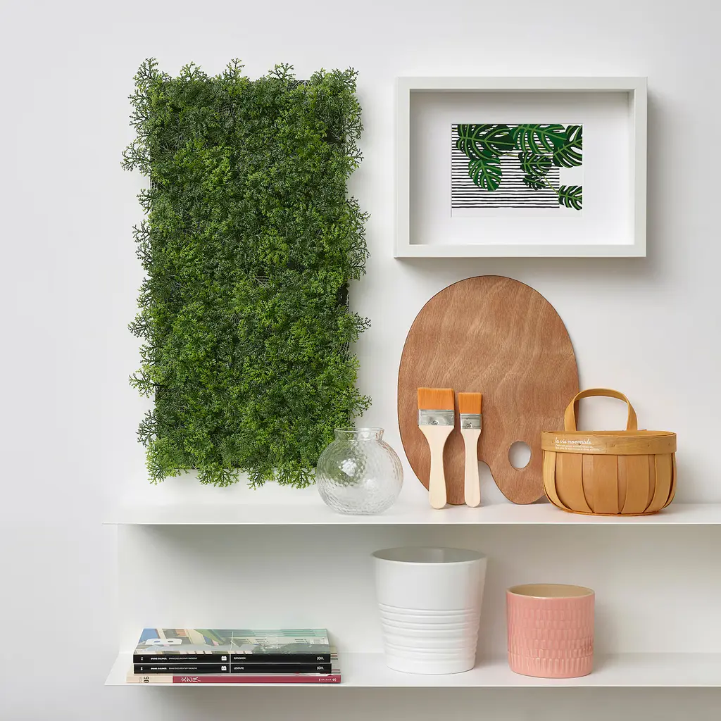 FEJKA Artificial plant - wall mounted indoor/outdoor/moss green 10 ¼x10 ¼ ". Liven up your living space with greenery by decorating your walls with the artificial plant panel. You can create a vertical garden indoors and outdoors by connecting multiple plant panels together.