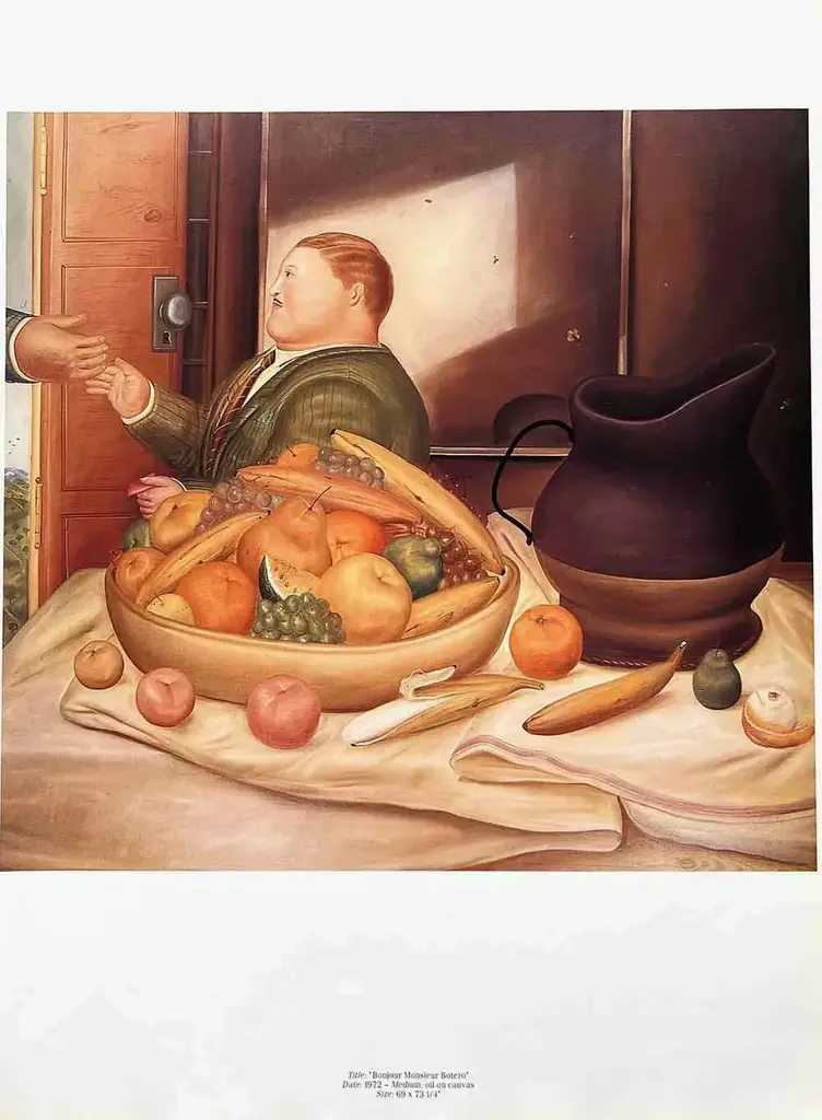 Title: Bonjour Monsieur Botero Artist: Fernando Botero Country: Colombia Medium: Offset – Quadrichromie Marks: Not Signed not numbered Paper size: 16 x 12 inch Printed: 1983 in Italy Provenance: Book Fernando Botero Sequence Condition: Fine Certificate of authenticity is included