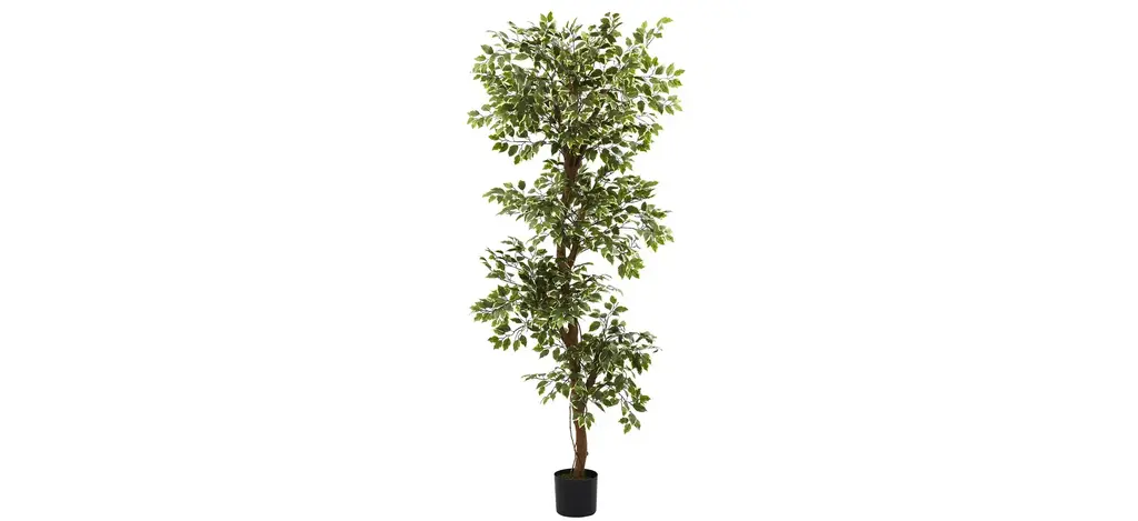 This lifelike artificial 4' fiddle leaf fig tree features 144 vibrant green leaves wrapped around each other in a close embrace. The fiddle leaf fig tree is perfect for near a doorway or dark corners that need to be brightened. The best part may be that it's maintenance free!