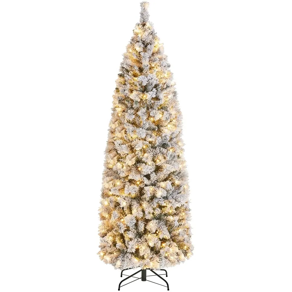 Specification: Say goodbye to complex installation, the Xmas tree comes with hinged connections that make branch tips automatically expand. Meantime, its metal stand with anti-slip foot pads is fold-able, further saving your precious time. Key Features● Year-Round Vibrancy: The 6 ft Xmas tree boasts 752 branch tips that cleverly mix PE leaves and pine needles for high simulation. Unlike real trees, it stays vibrant all year round and can be a flocked canvas for your creativity to match the wintry season. ● Premium PVC and PE: Built to last, the Christmas tree is crafted of PVC that resists fire and unwanted deformations. Additionally, its PE material avoids fading to keep the Xmas tree vivid for a longer time, while it also won't cause allergies and is safe for kids. ● Stunning Light Effects: For a magical ambiance, up to 250 LED lights are included to emit warm white lighting, bringing joy and cheer to all who behold the Xmas tree. Also, worry-free enjoyment is ensured, as LED lights are safer, energy-saving and durable. ● Stable Hinged Frame: Say goodbye to complex installation, the Xmas tree comes with hinged connections that make branch tips automatically expand. Meantime, its metal stand with anti-slip foot pads is foldable, further saving your precious time. ● Festive Focal Point: Not just for home, the pre-lit Christmas tree can be decorated for happy gatherings in the office, school, mall, carnivals, etc. After parties, it can be easily disassembled into 3 sections for compact storage. By the way, we offer you a pair of gloves to protect your hands.