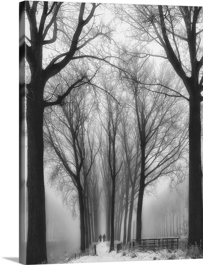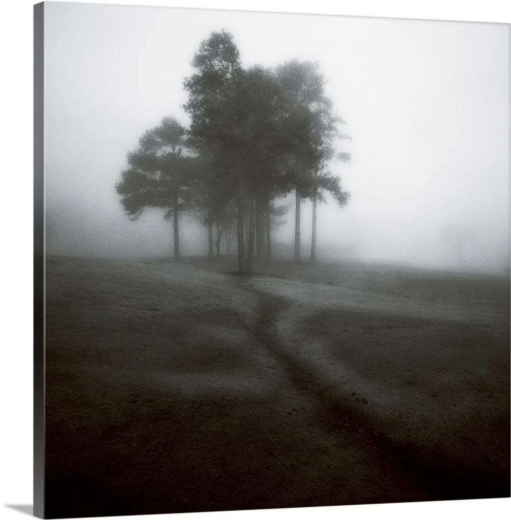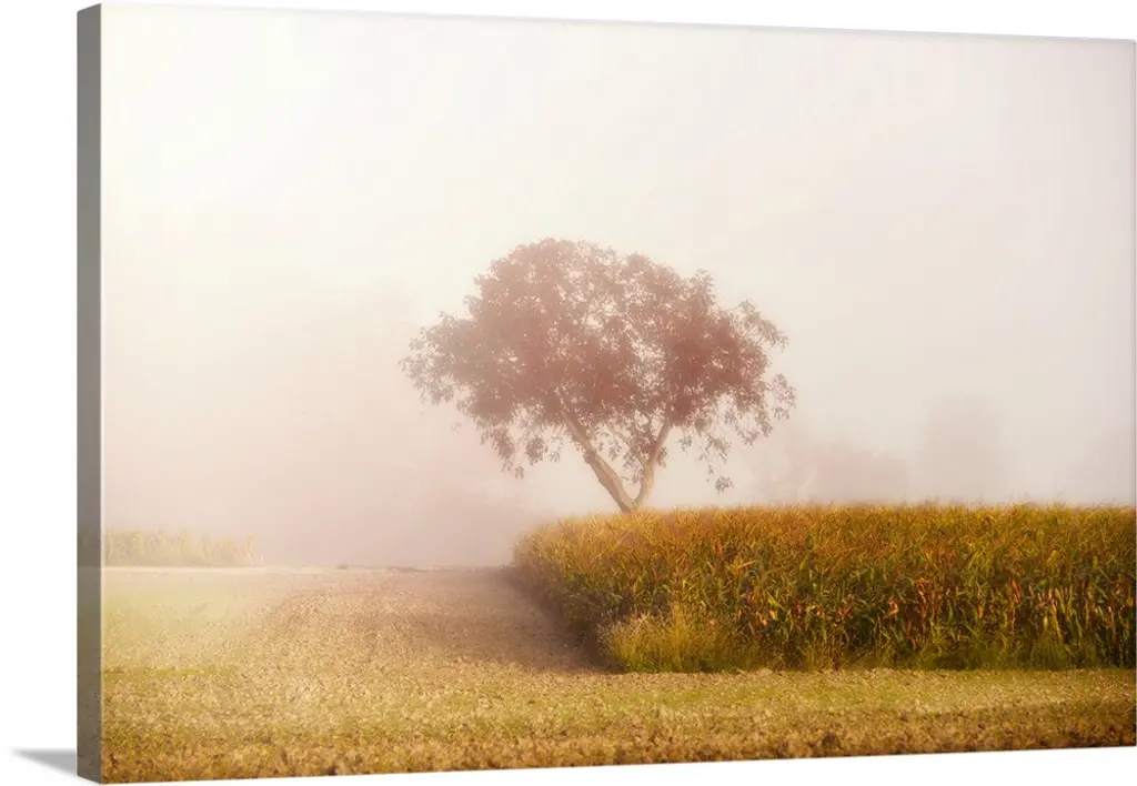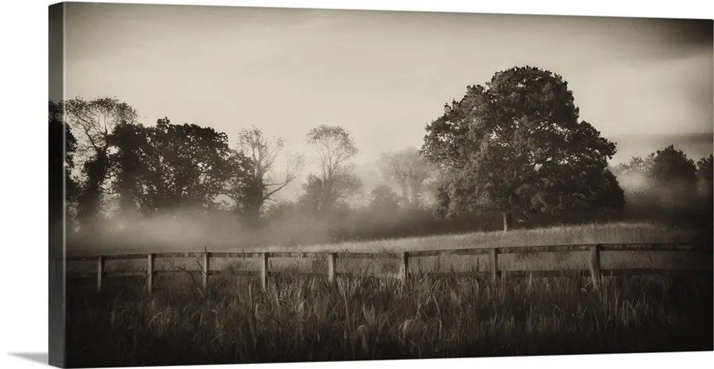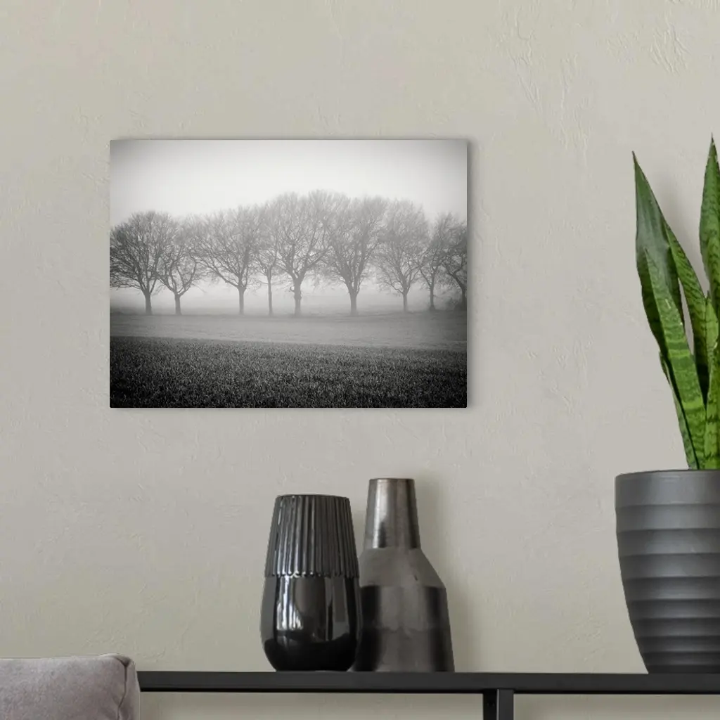 Foggy Landscape Scene With Trees With Bare Branches