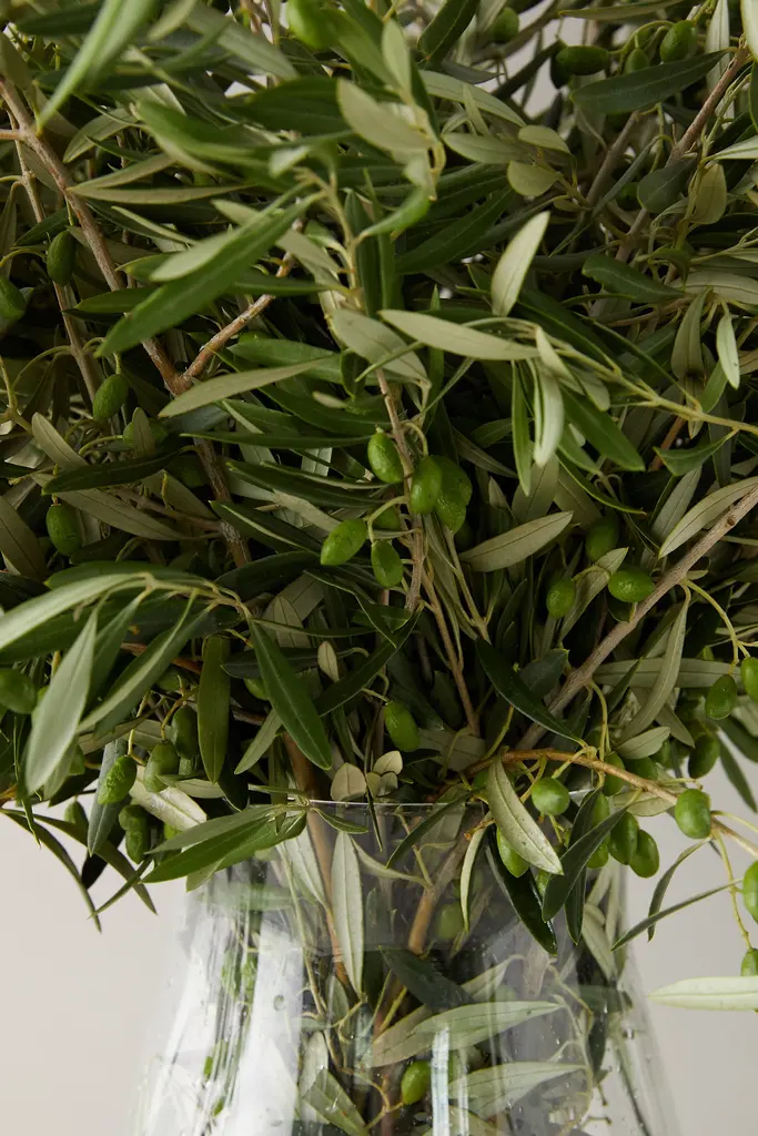 Fresh olive branches make a vibrant, seasonal display for the entryway or tabletop.