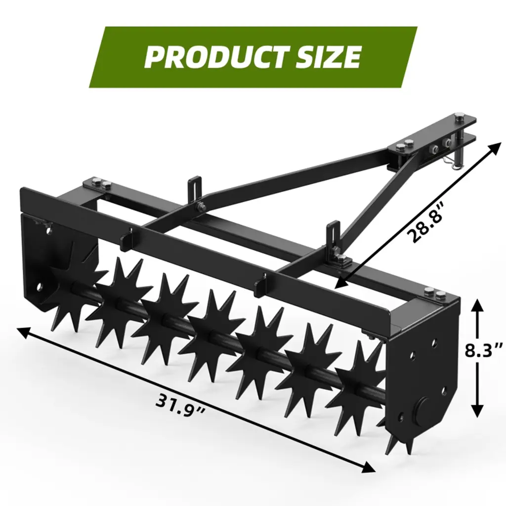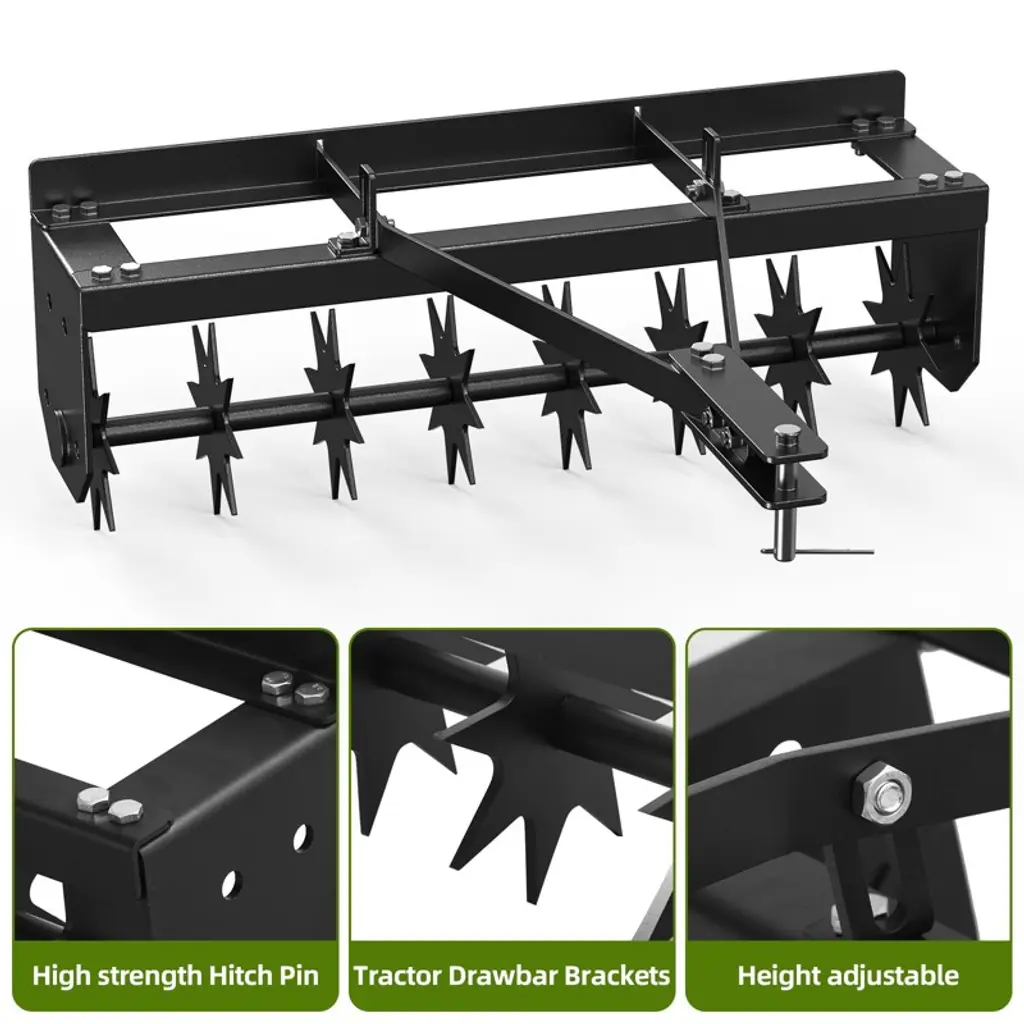 This 32-inch tow-behind spike aerator effectively penetrates compacted soil to allow air, water, and nutrients to reach the root zone of your lawn.With its wide coverage, this tow-behind spike aerator can cover large areas of your lawn efficiently, saving you time and effort.
