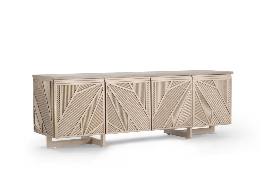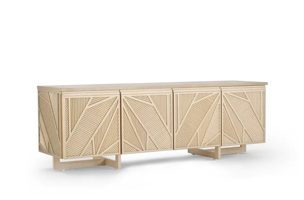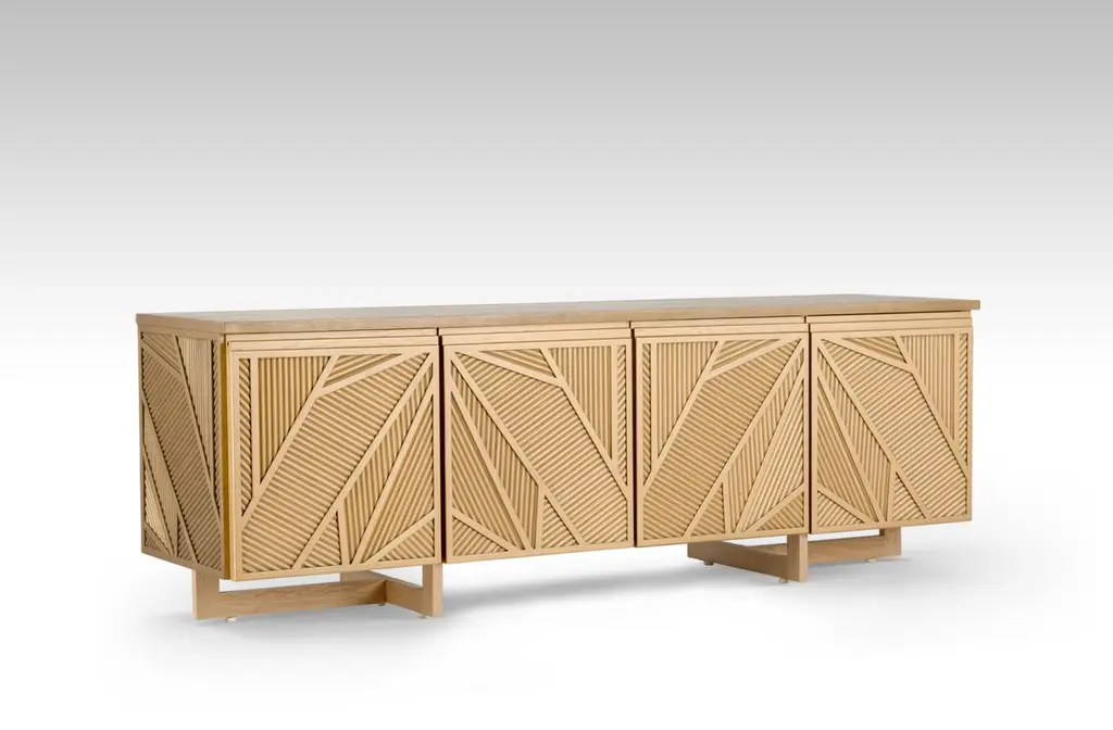 Geometric Oak Sticks Tv Unit Inspired From Ancient Egypt Use Of Palm Branches