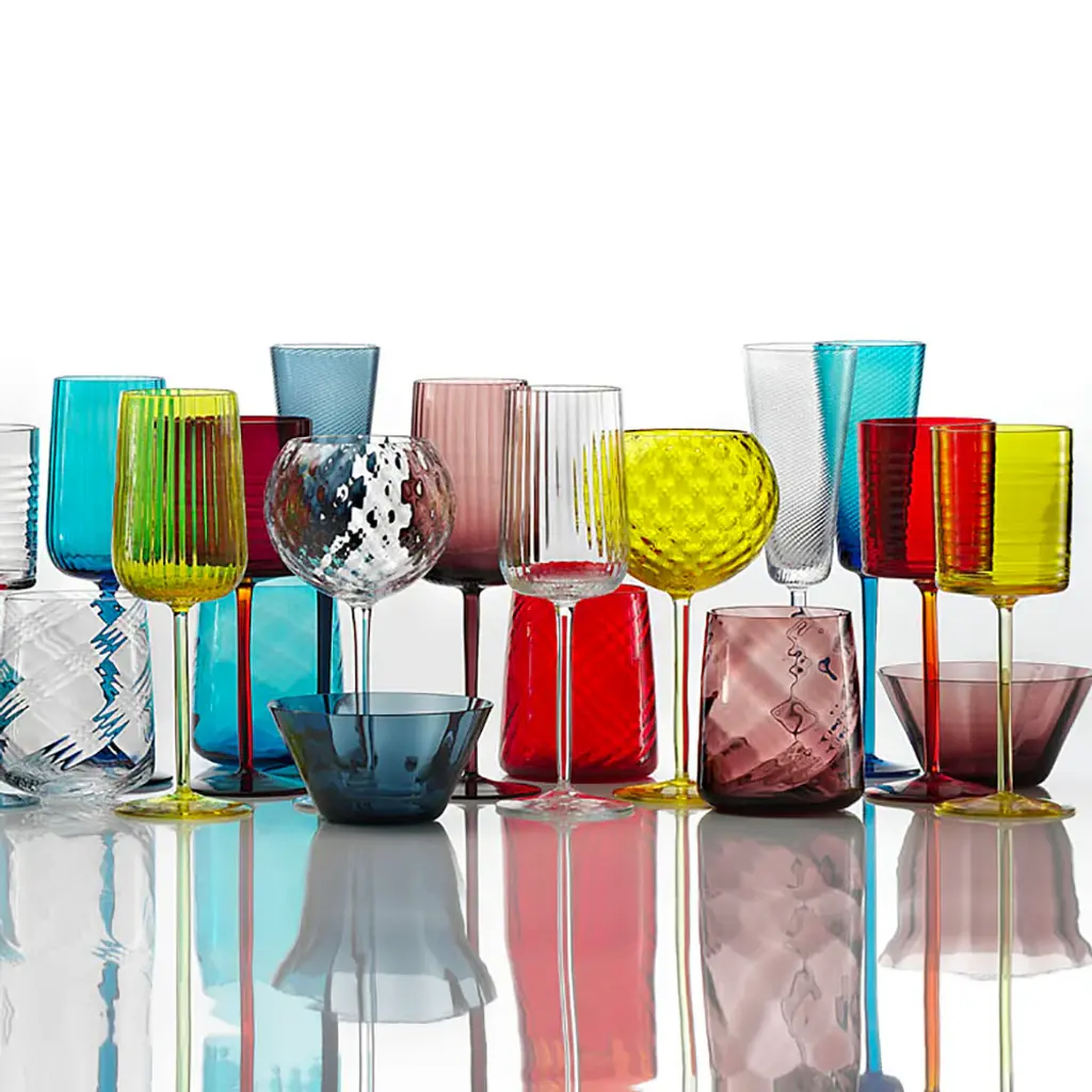 Indulge in a sophisticated drinking experience with the Gigolo Red Wine Stem Glass from Nason Moretti. Handcrafted by Murano glass specialists, this glass boasts a grand spherical bowl and a textured surface for an elevated touch. Choose from a wide range of colors and combine with others from the 'Gigolo' collection for a stylish tablescape. Highlights