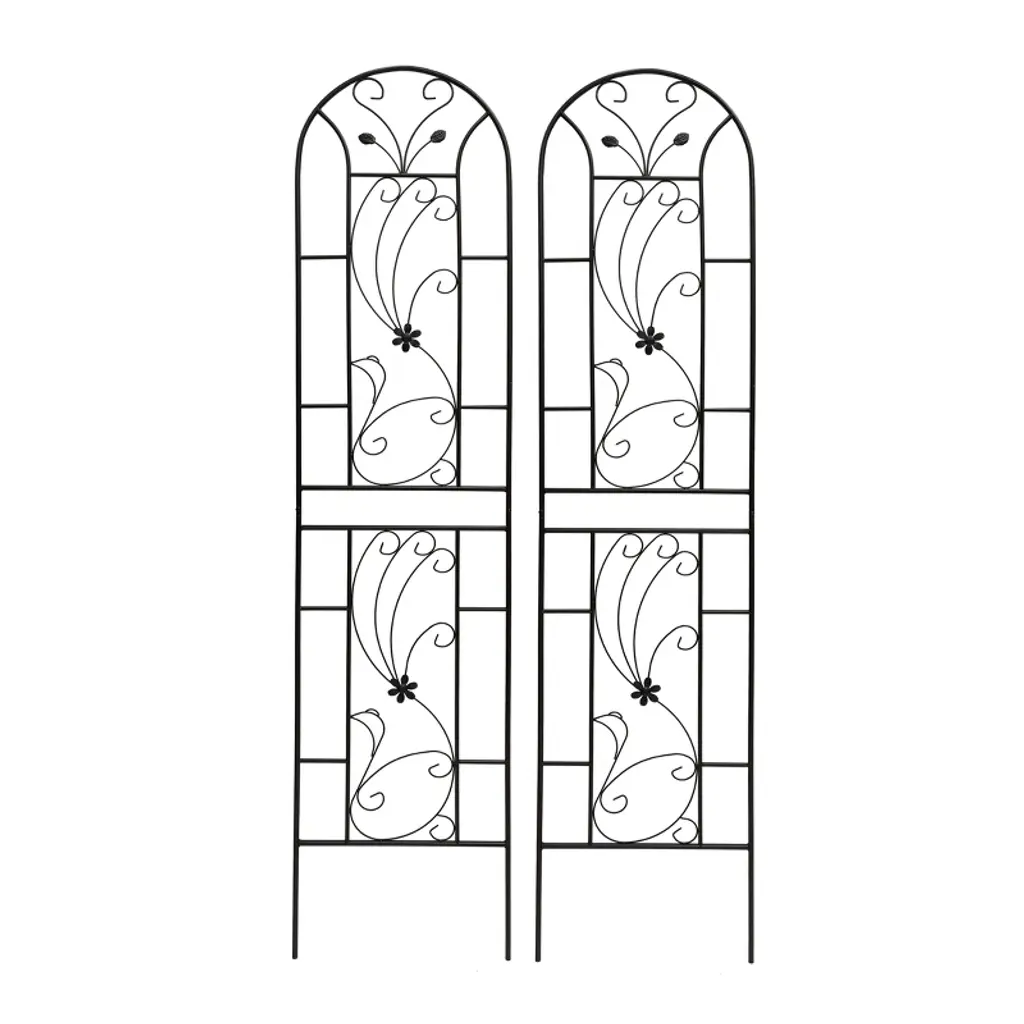 Gulches 2 Pack Metal Garden Trellis 86.7" X 19.7" Rustproof Trellis For Climbing Plants Outdoor Flower Support Peacock Style Black