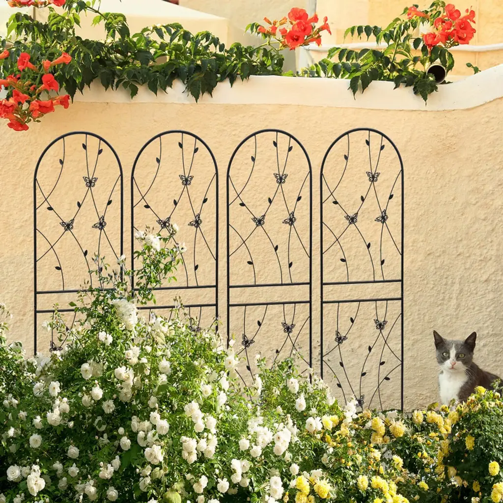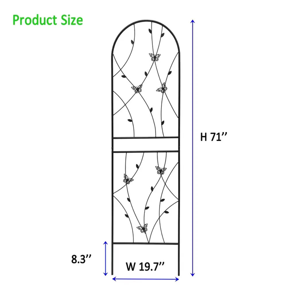 Maximize your garden's potential with our 4 Pack Metal Garden Trellis, each measuring 71" x 19.7". Crafted from rustproof materials, these trellises offer reliable support for climbing plants while adding a delightful butterfly decoration to your outdoor space. Perfect for enhancing flower beds or creating a lush vertical garden, these versatile trellises are designed to withstand the elements and provide lasting beauty. Elevate your gardening experience and create a stunning floral display with this essential garden accessory.