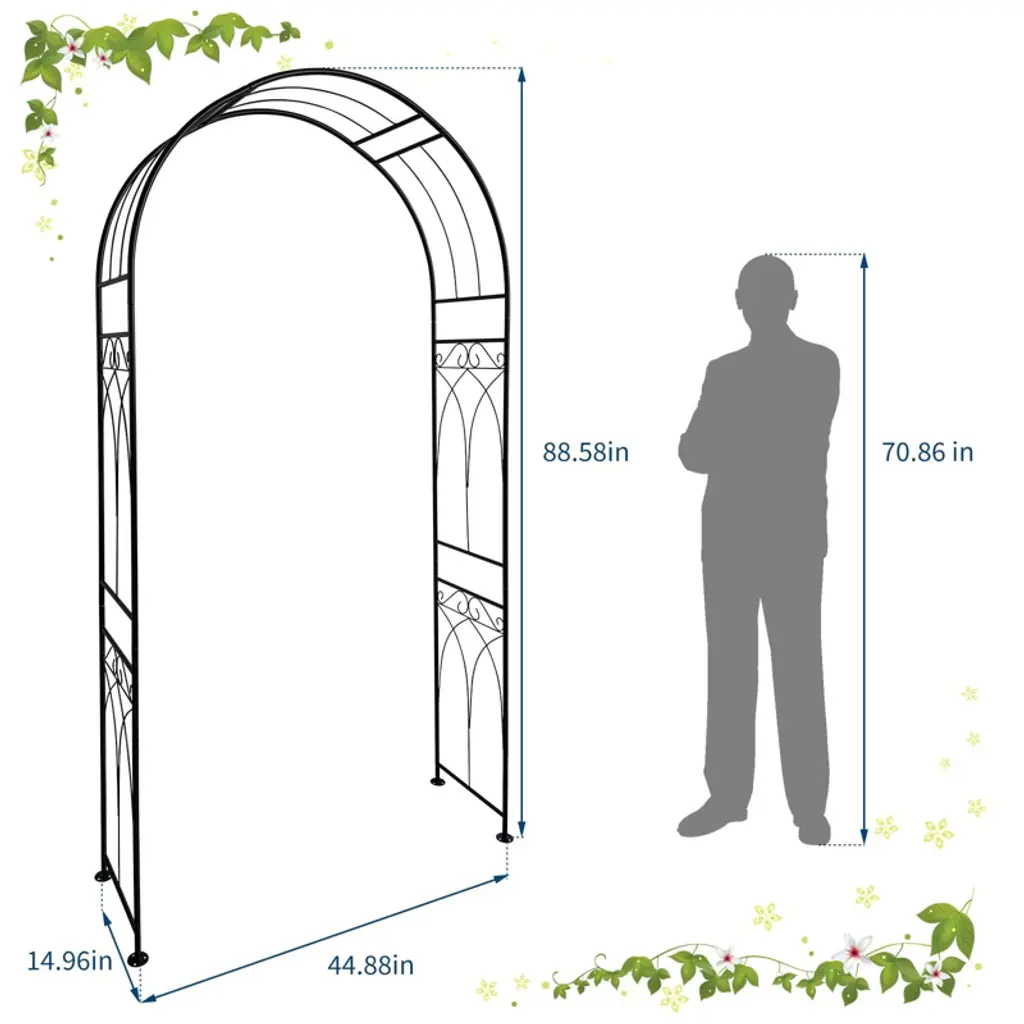 Gustowave Metal Garden Arch Trellis, Garden Arbor For Climbing Plants, Wedding Arch Arbor, 44.88" W X 14.96" D X 88.58" H, Black