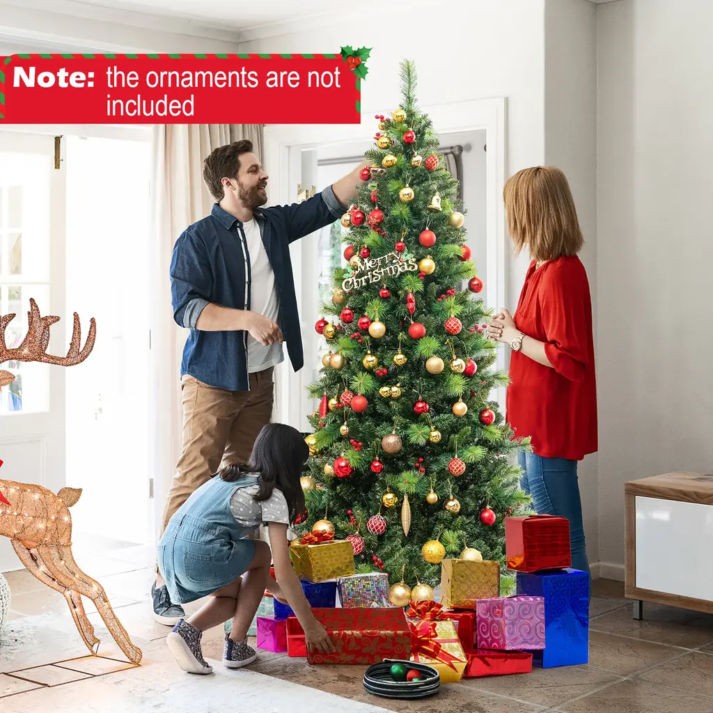 Gymax 7 Ft Pre-Lit Artificial Christmas Tree W/ 974 Branch Tips & 400 - 7 Foot