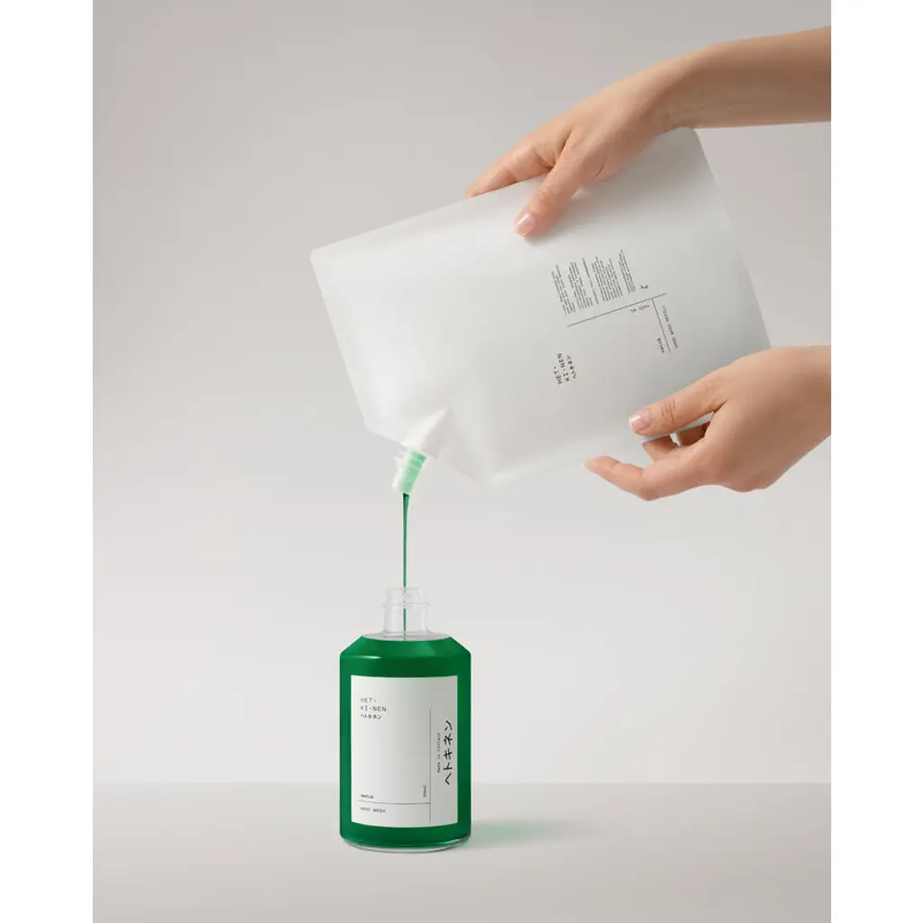 Hetkinen’s Metsä aromatic wash is comprised of high-quality vegetable oils that cleanse hands and the body thoroughly without causing dryness. The hand wash captures the essence of the Finnish forest with its scent of fresh air, soft moss and trees – aptly, "metsä" means forest in Finnish. A delight for all senses, the Hetkinen hand wash has an antibacterial function for a refreshingly clean yet gentle end result. All Hetkinen skincare products only contain pure, natural ingredients with no parabens, artificial scents or colors, mineral oils or polyethylenes. All ingredients are plant-based, making Hetkinen natural cosmetics also suitable for vegans. The 1-liter refill pack is designed for topping up Hetkinen soaps packaged in glass bottles – one pack is enough to refill a 16.91 fl oz (500 ml) bottle twice. Ingredients: aqua, potassium oleate, potassium cocoate, glycerin, potassium citrate, citric acid, pinus sylvestris oil, picea mariana oil, juniperus communis oil, pinus sylvestris needle extract