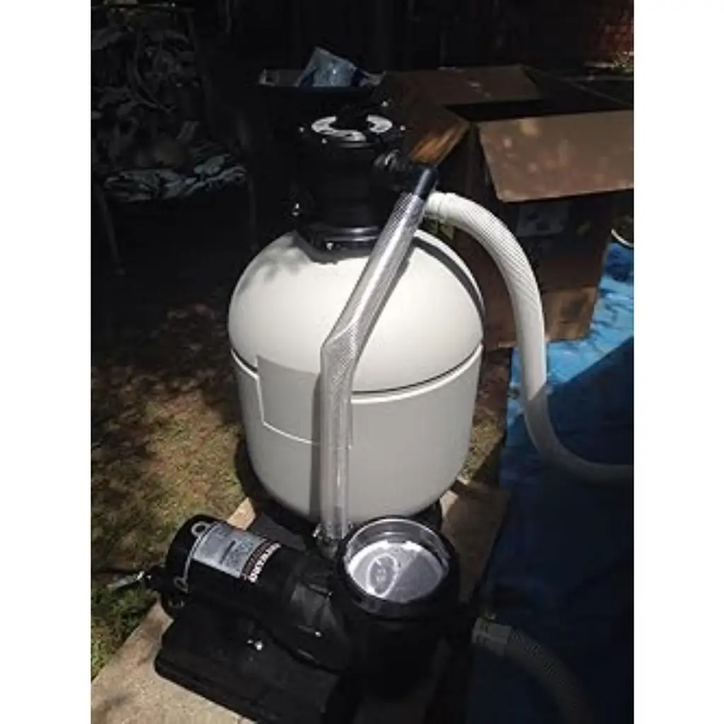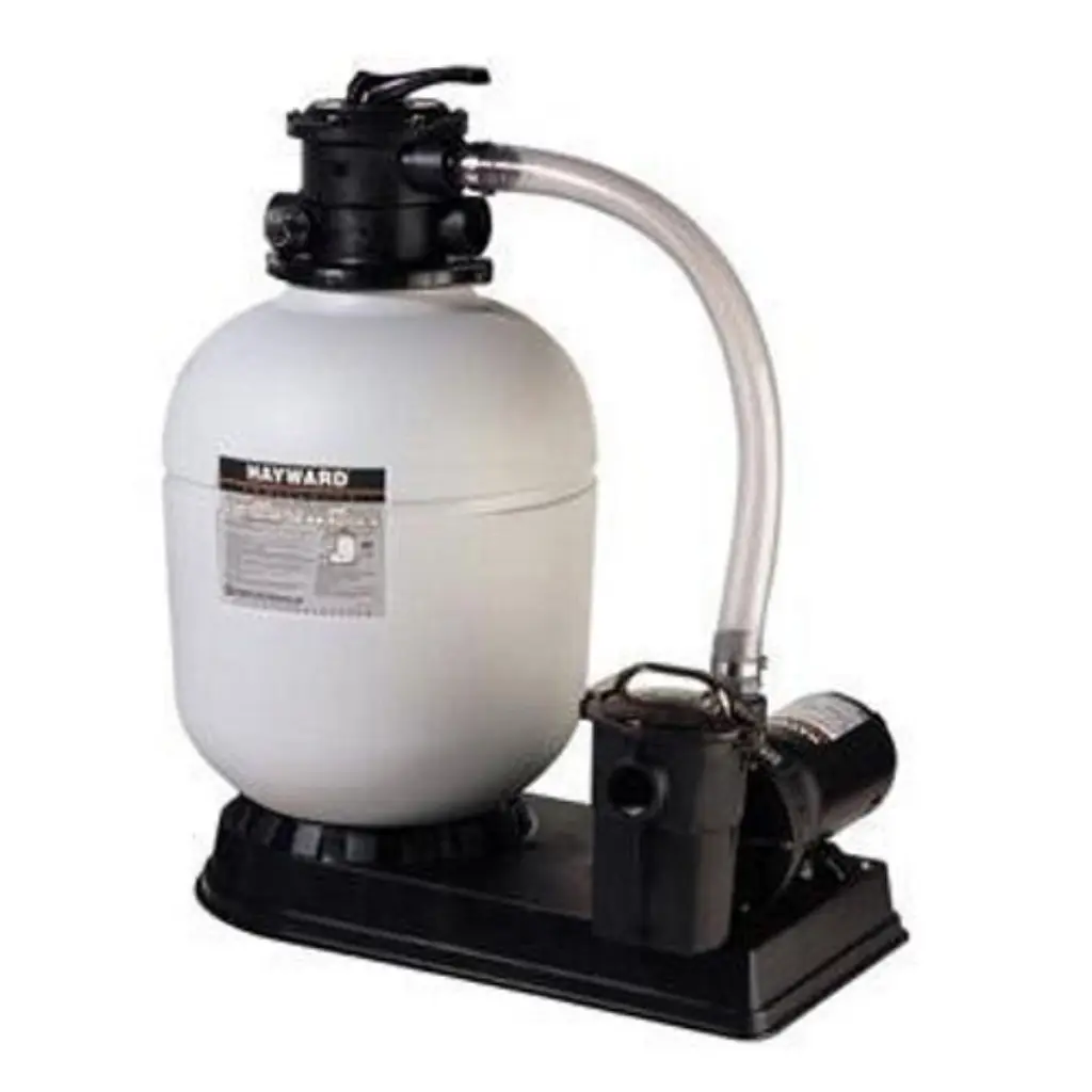 The Hayward ProSeries 21-Inch Above-Ground Pool Filter System is a complete filtration solution for above-ground pools. The system includes a 20" polymeric tank, a 7-position filter control valve, a 1.5 HP PowerFlo Matrix pool pump, a one-piece deluxe base, and a 1 1/2" hose package. The 7-position VariFlo valve allows for maximum flow at a lower pressure drop, while the large pressure sand/water drain allows for quick winterizing or servicing. The pump-to-filter union connection provides simple installation and interization. The integral top diffuser ensures even distribution of water over the entire sand bed, maximizing the filtration area. Overall, the Hayward ProSeries 21-Inch Above-Ground Pool Filter System is a convenient and efficient option for those seeking a complete above-ground pool filtration system.