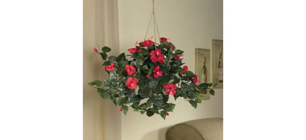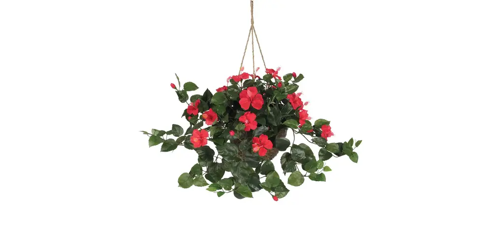 This 10" Hibiscus Hanging Basket perfectly displays these beauties amongst a backdrop of leafy greens, making this the perfect hanging basket for any home or office. One of the most distinct looking blooms that Mother Nature offers is the Hibiscus. Splashy and full of life, these beautiful flowers are known for their classic petal shapes and distinct center stalk that emerges from with in.