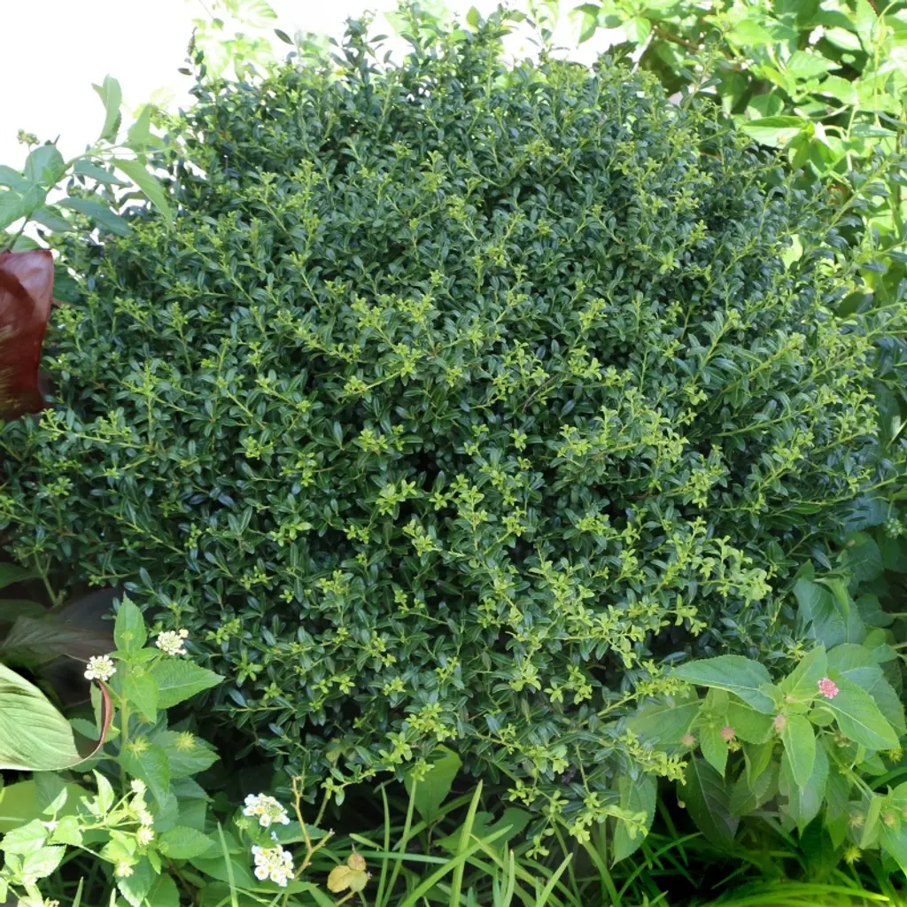 Soft Touch' grows as a compact, mounding shrub with soft, glossy foliage accented by a silvery midvein. With leaves that resemble a boxwood, it makes an excellent addition to shrub borders, walkways, formal hedges, and decorative containers. Suitable for nearly any part of the country, 'Soft Touch' bears small black fruits that provide food for songbirds from late summer through the winter months.