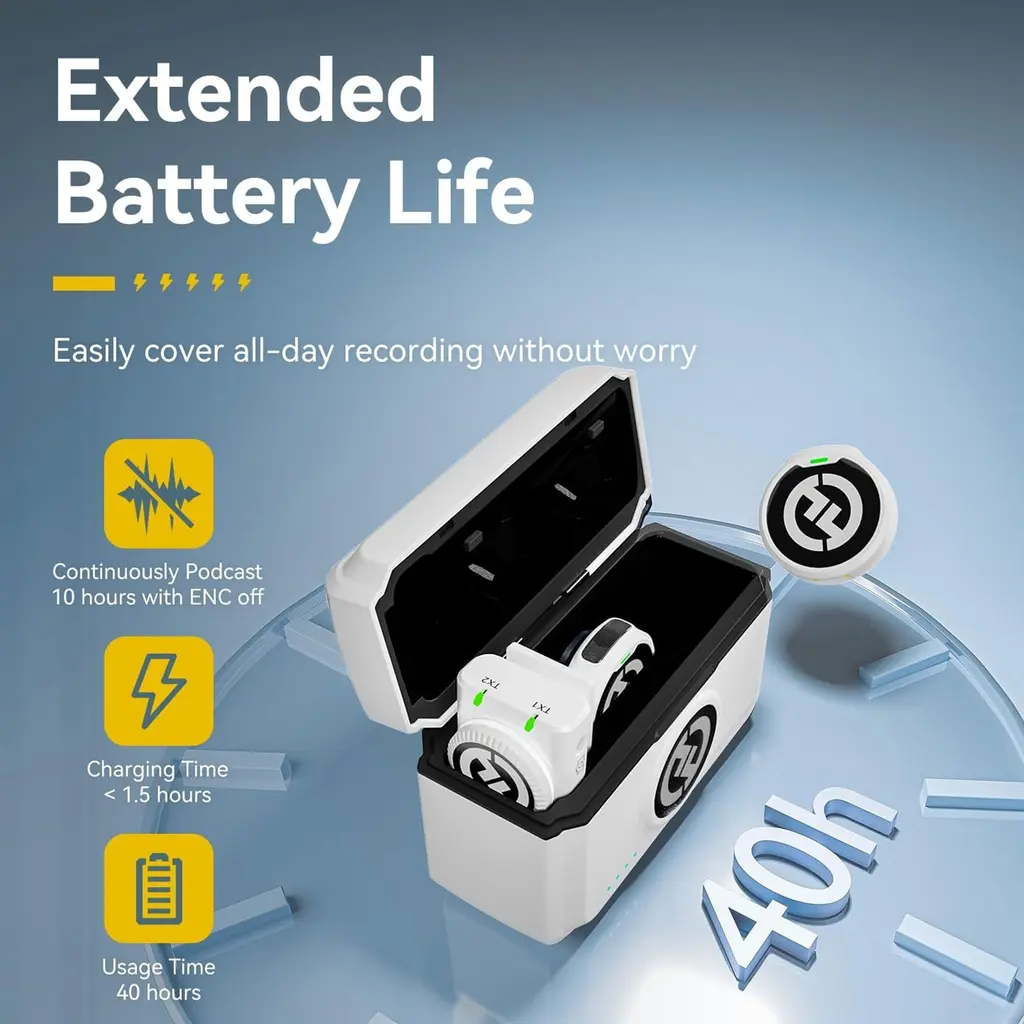 Hollyland Lark M2 Duo 2-Person Wireless Combo Microphone System (2.4 Ghz, Ivory White) + 2X Hollyland Lavalier Microphone - Ivory White