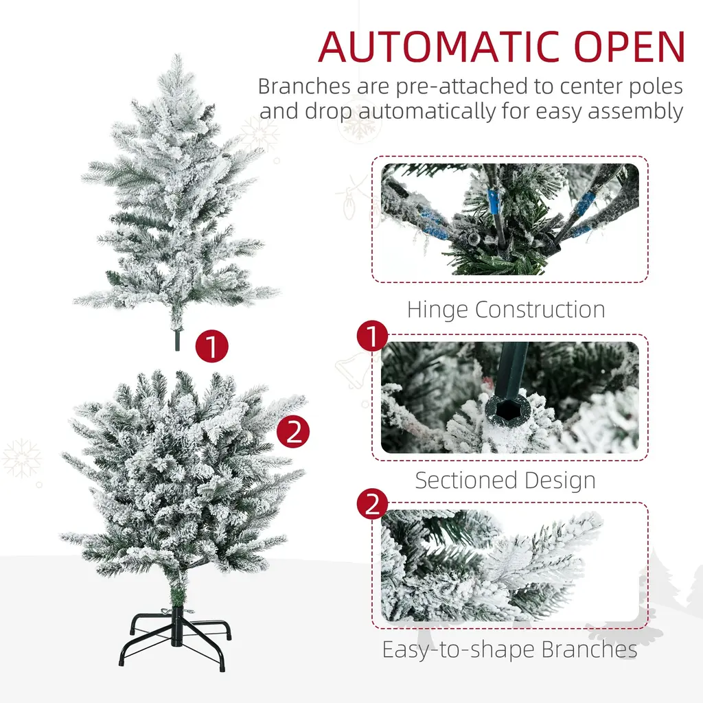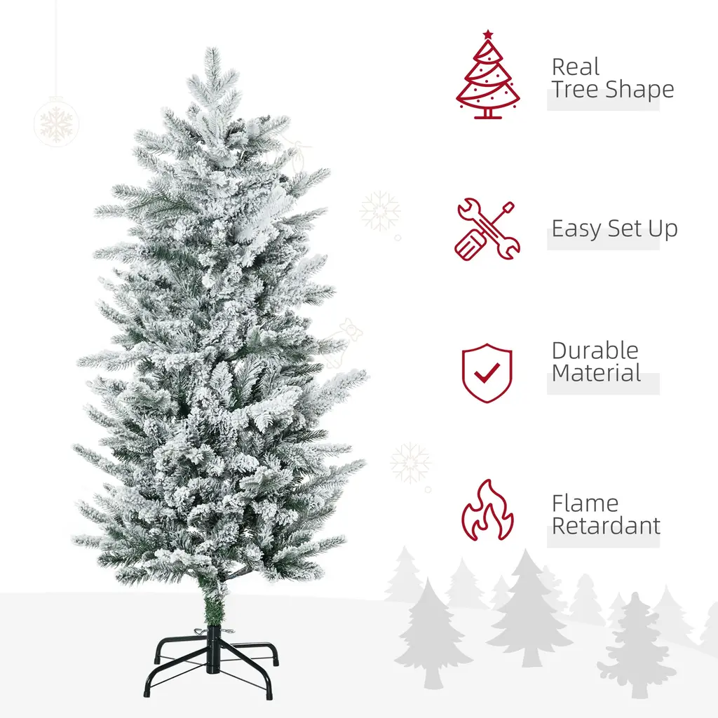 Homcom 4.5ft Tall Flocked Artificial Christmas Tree Holiday Décor With 267 Snow Branches,green - 4.43 Ft - 4.5 Foot - Green