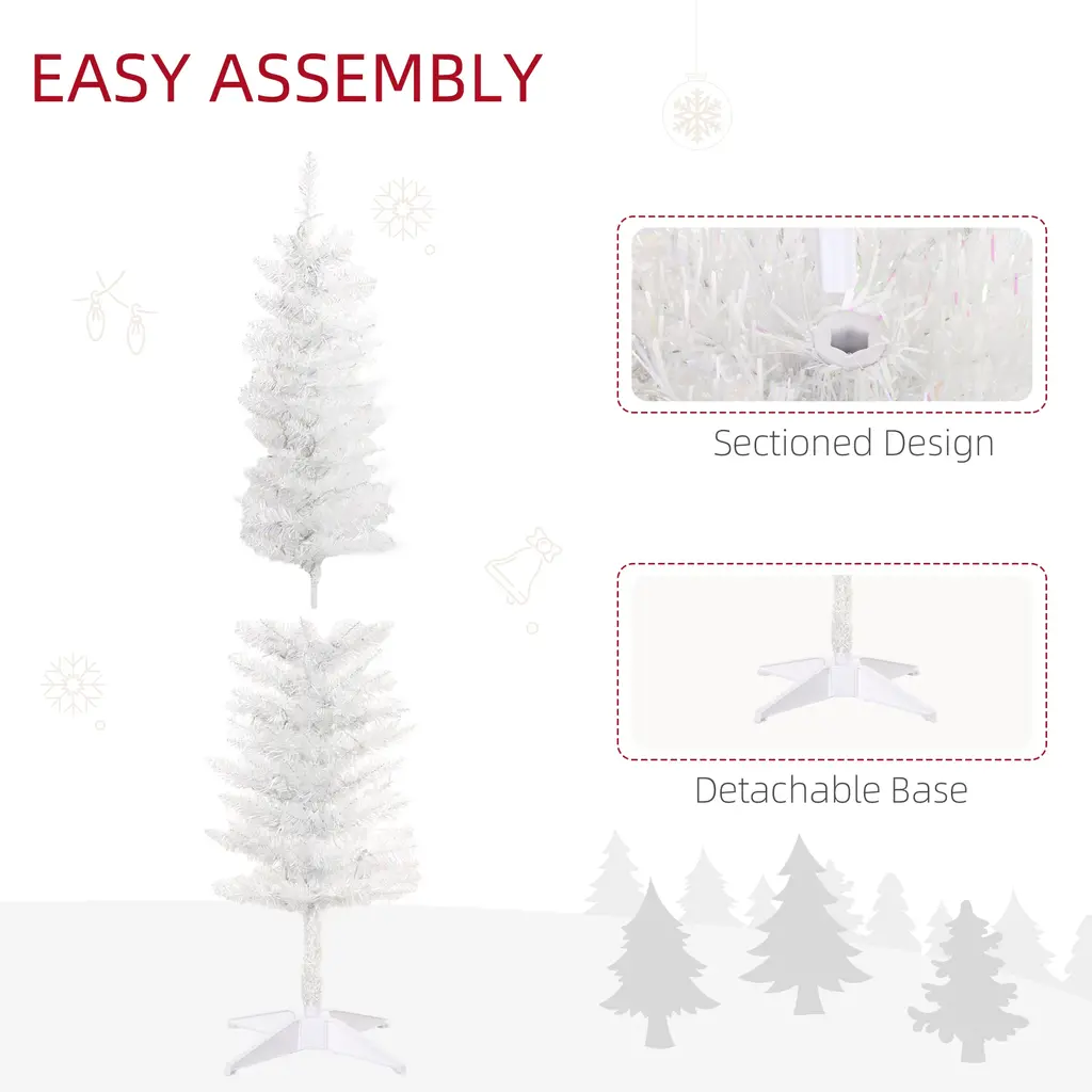 Homcom 5Ft Tall Pencil Prelit Artificial Christmas Tree Holiday Décor With 250 Colorful Surface Branches - 4.91 Ft - White