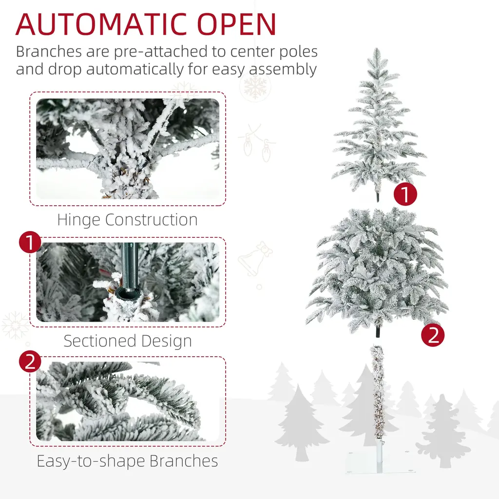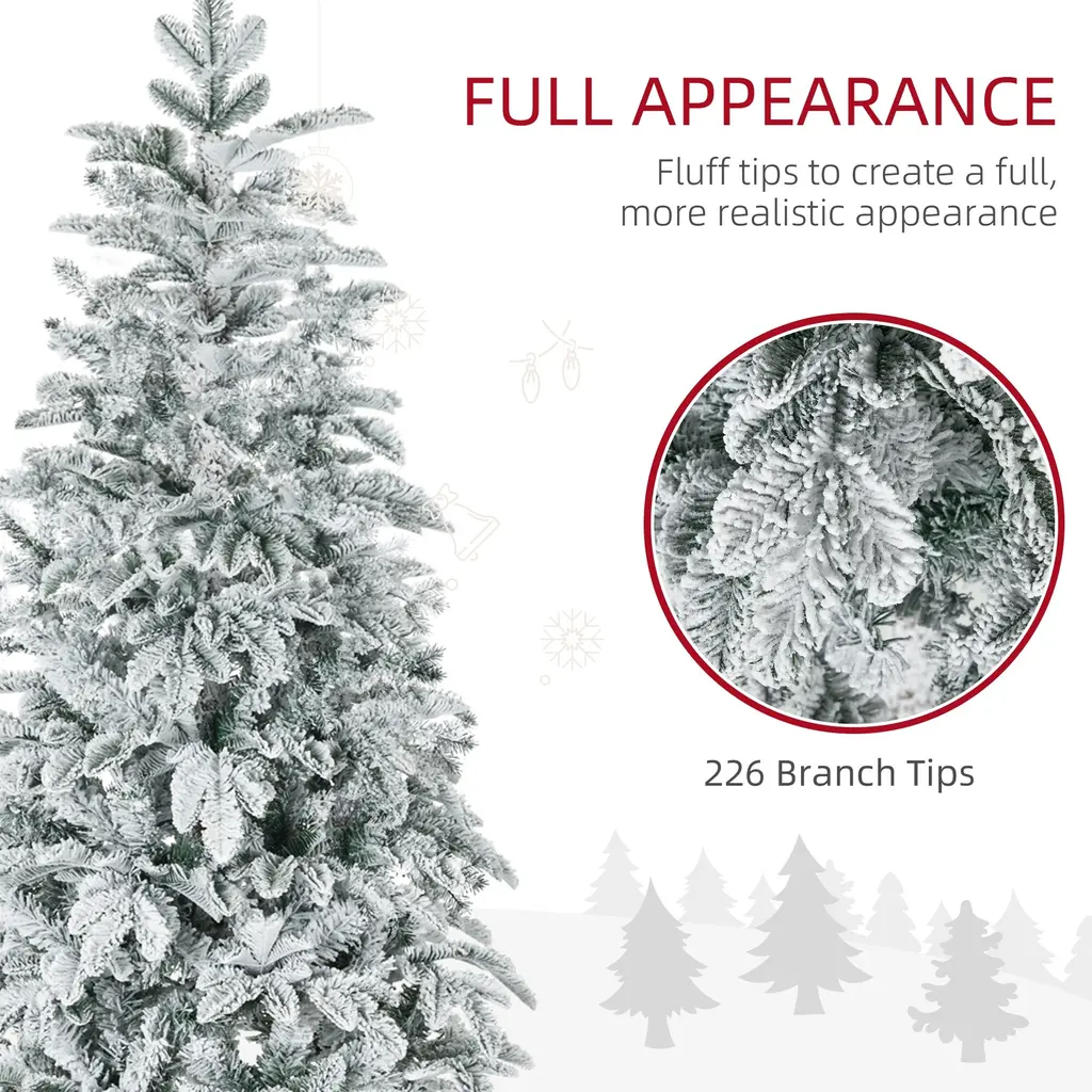 Homcom 6Ft Tall Flocked Artificial Christmas Tree Holiday Décor With 226 Snow Branches, Auto Open, Steel Base, Green - 6 Foot
