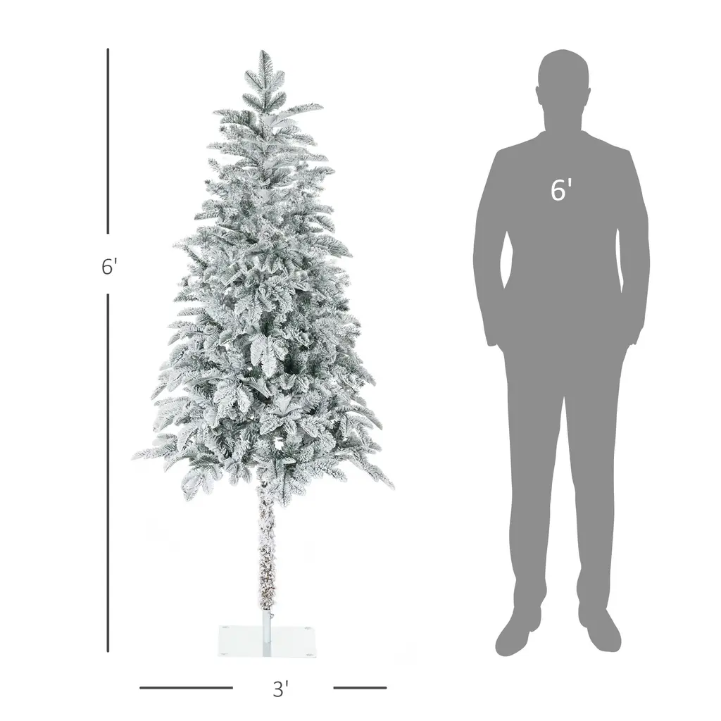Descriptions:HOMCOM's flocked Christmas tree gets you all the ambience the holiday brings without any of the mess the holiday brings. Spending time together with friends and family is really what Christmas is all about, and your tree is something you shouldn't have to mess with (ugh). Our HOMCOM Xmas tree will help take some of the hassle out of the holiday. Little mess, simple assembly, and impeccable ambience help make your season just a little brighter.Features:● 6ft tall in a real tree shape, providing a healthy, natural look● Sprayed with artificial snow to add a wintry appearance● Hinge construction, section design, branches being opened automatically, easy-to-shape molded branches for quick setup. A flat base is easy to be covered by other decorations● Flame retardant branches and faux snow are unlikely to catch fire or cause serious household damage● Sturdy steel base keep the tree uprightSpecification:- Color: Green- Material: Plastic, Steel- Overall Dimension: Dia. 33.5" x 70.75" H- Tree Height: 6 ft- Tip Count: 226- Item Label: 830-725V00GNNote: Only for indoor use, not for outdoorIn order to get a full appearance, please spread out all individual tips to get the best possible look from the tree, suggest you take 20-30 minutes to shape the tree.