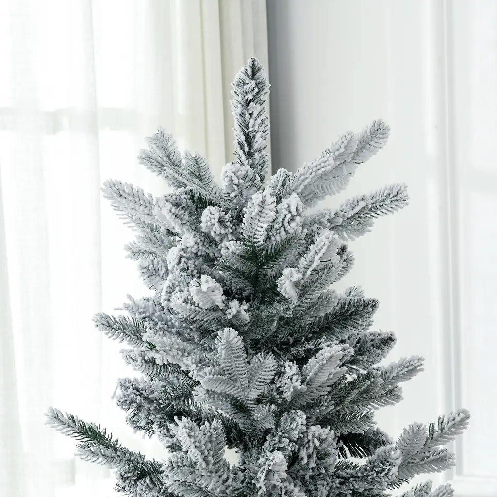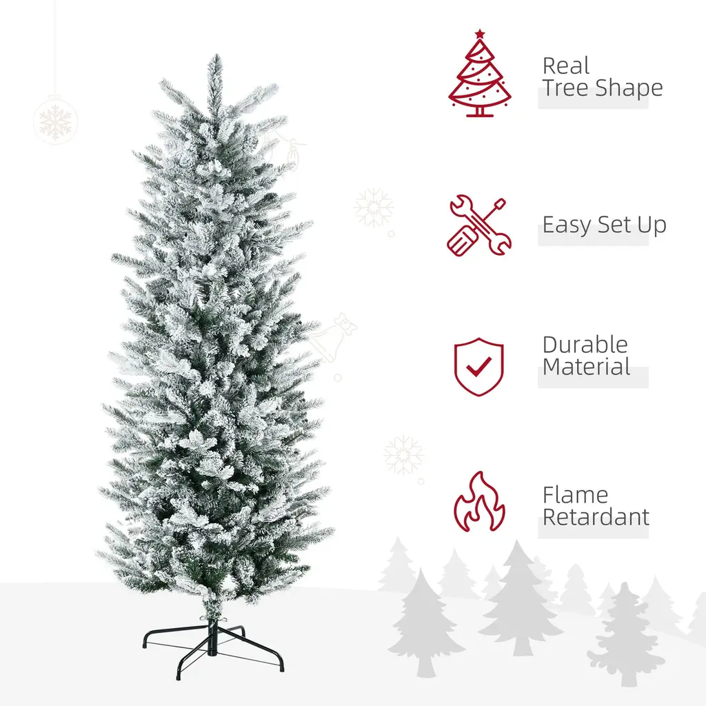 Homcom 6Ft Tall Flocked Artificial Christmas Tree Holiday Décor With 477 Snow Branches, Auto Open, Steel Base, Green - 5.89 Ft - 6 Foot - Green