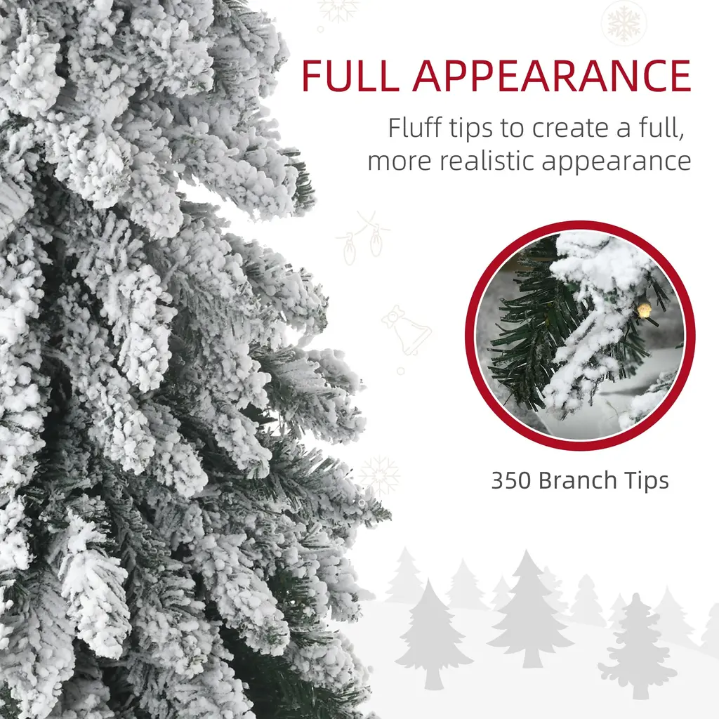Homcom 7Ft Tall Prelit Pencil Artificial Christmas Tree Holiday Décor With 534 Snow Flocked Branches, Downswept Shape - 6.89 Ft - 7 Foot