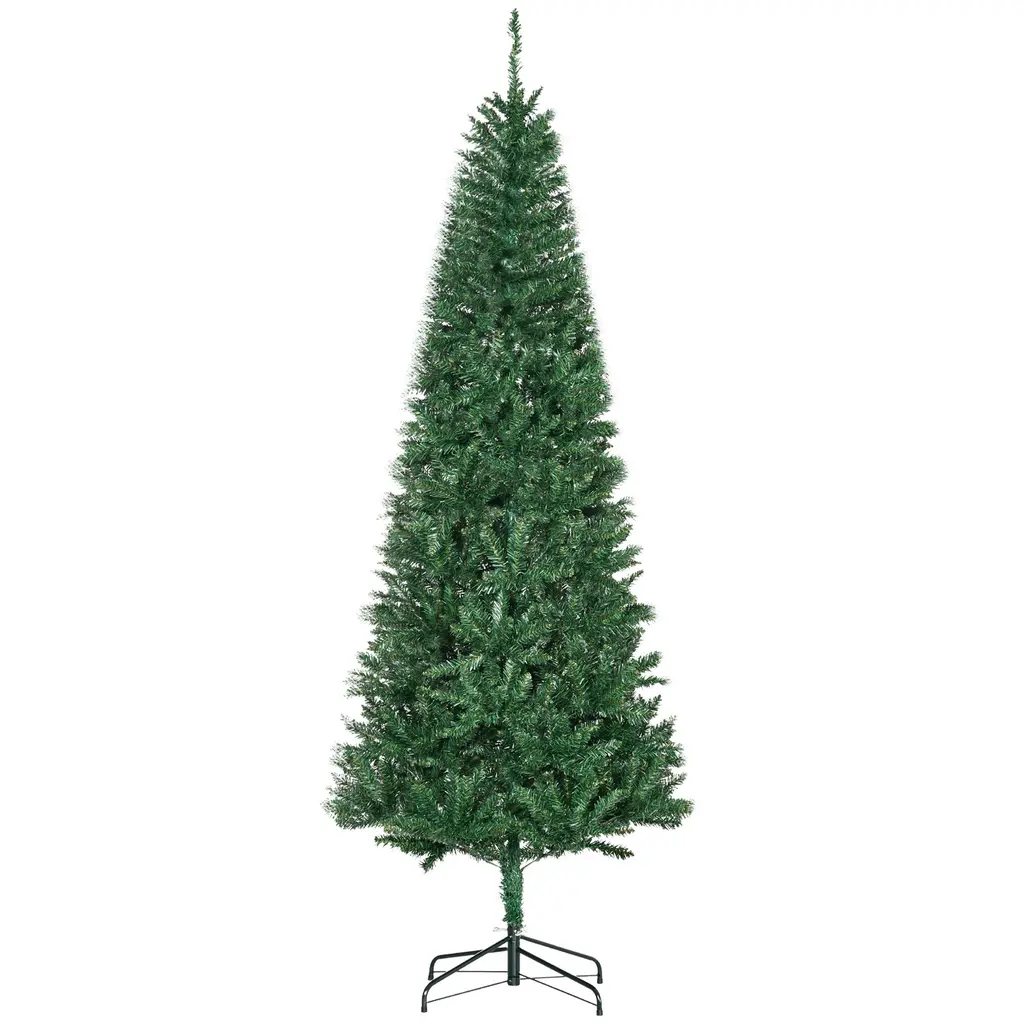 Homcom 8' Tall Unlit Slim Fir Artificial Christmas Tree With Realistic Branches, And 1168 Tips, Green - 7.87 Ft - 8 Foot - Green