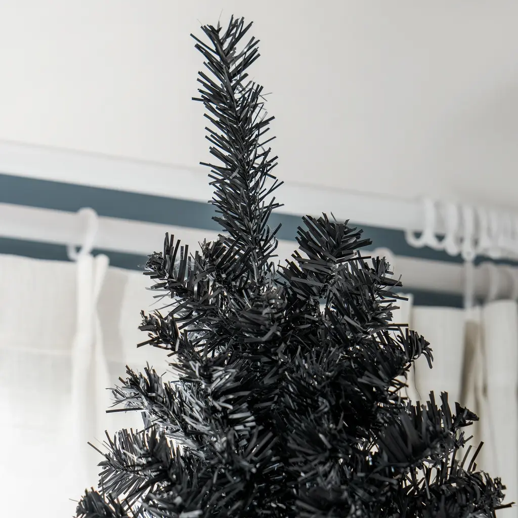 HOMCOM's realistic Christmas tree selection gets you all the ambiance the holiday brings without any of the mess the holiday brings. Spending time together with friends and family is really what Christmas is all about, and your tree is something you shouldn't have to mess with (ugh). Our HOMCOM narrow Christmas tree will help take some of the hassle out of the holiday. Little mess, simple assembly, and impeccable ambiance help make your season just a little brighter.Features:● Black color creates a cool atmosphere, adds Christmas style as well as Halloween style● 8 ft. tall artificial Christmas pencil tree has a realistic tree style● Branches can be opened automatically for easy assembly● Realistic plastic branches create a more life-like look● Base is detachable and foldable for easy storage● Branches are flame retardant to ensure safetySpecification:- Color: Black- Material: Plastic, Steel- Overall Dimensions: 33.9" Dia. x 94.5" H- Tree Height: 8 ft- Tip Count: 1168- Item Label: 830-377V03BKNote: Only for indoor use, not for outdoorsIn order to get a full appearance, please spread out all individual tips to get the O look from the tree, we suggest you to take 35-55 minutes to shape the tree.Only the tree with the stand is included. Ornaments are NOT INCLUDED and are used just for effect.