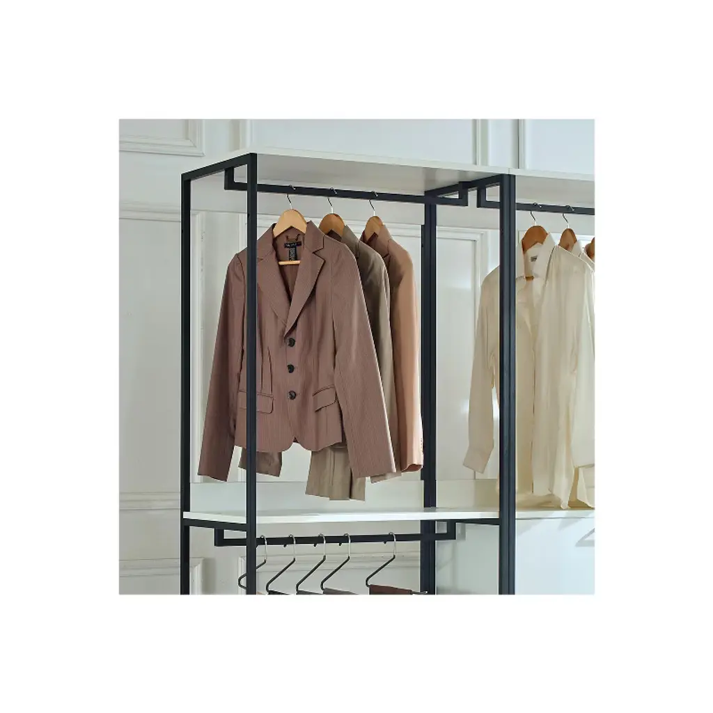 Homestock Fiona White Freestanding Walk In Wood Closet System With Metal Frame