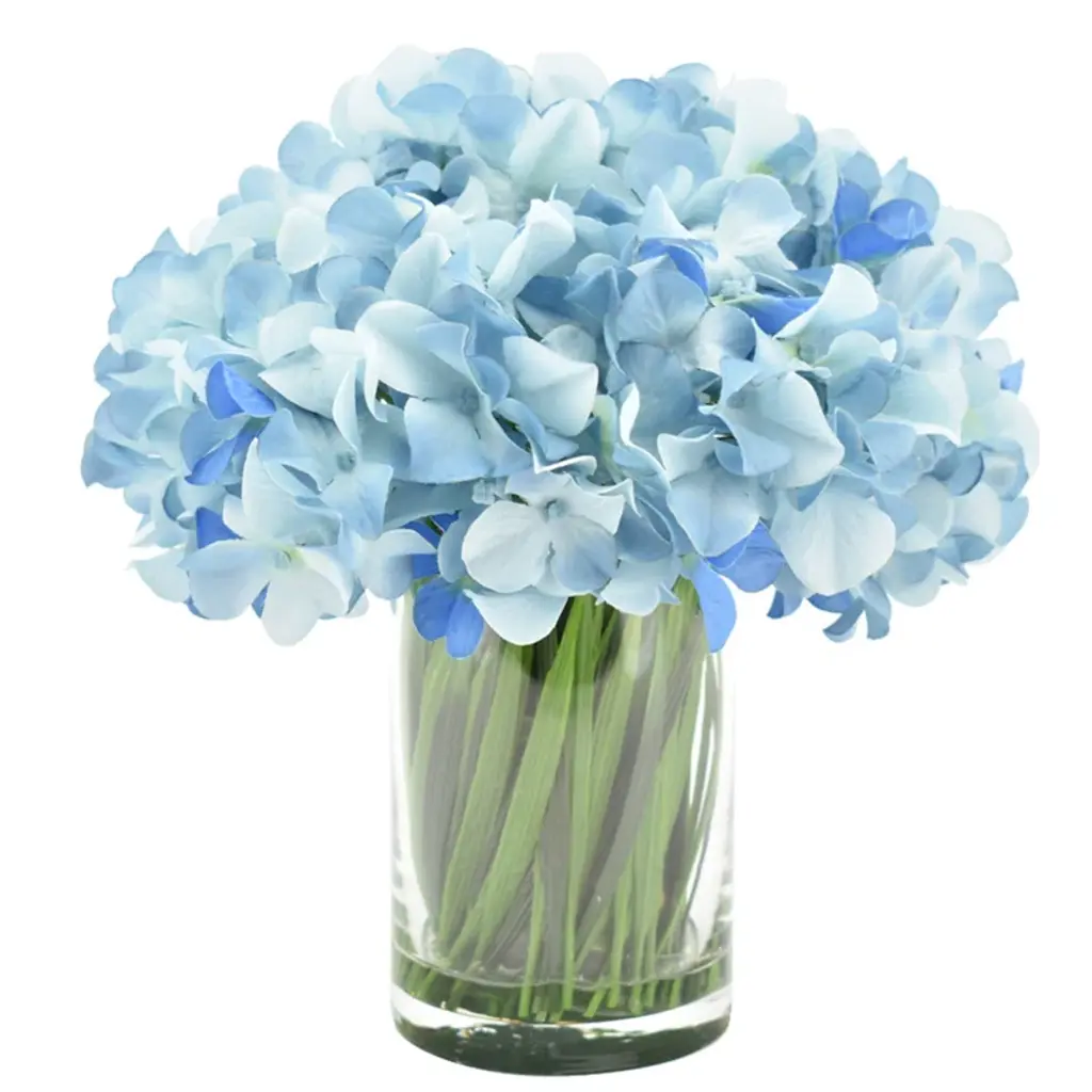 Hydrangea In Cylinder Light Blue