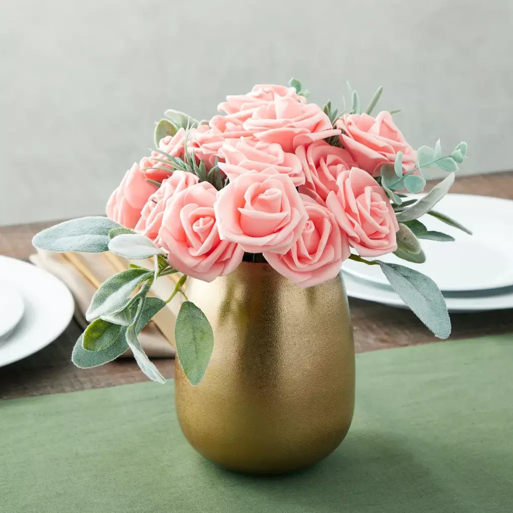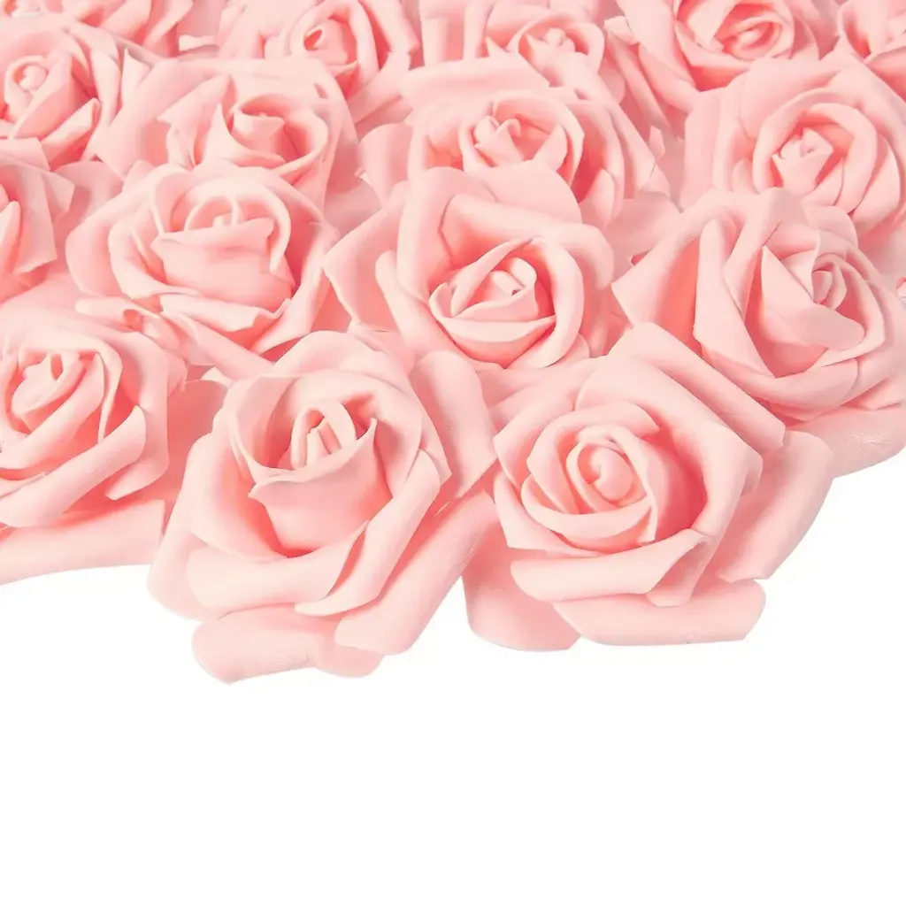 Elevate your party and home decor with our faux flowers bulk pack that contains 100 beautiful faux roses. These fabric flowers are made of sturdy PE (polyethylene) foam, allowing them to be used for multiple events and occasions, including Valentine's decorations, Easter and Christmas dinners, and family get-togethers. These flowers for decoration are also easy to clean. Wipe them clean with a damp cloth. The foam construction, combined with the stemless design, also makes these foam flowers incredibly easy to use. You can attach them to almost any object, including vases, candle holders, crafting foam, and other DIY materials utilizing a variety of fastenings, including hot glue, pins, double-sided tape, and staples. Each of our small artificial flowers is stemless while still featuring the stem top, allowing it to attach to various arts and crafts creations easily. The types of projects you can use them with are limited only by your imagination. Use our roses flowers bulk pack to spell out the happy couple's names at a wedding reception, for cake decorating, a kissing ball, as loose flowers for decorations, or to create custom table centerpieces, backdrops, or floral garlands.