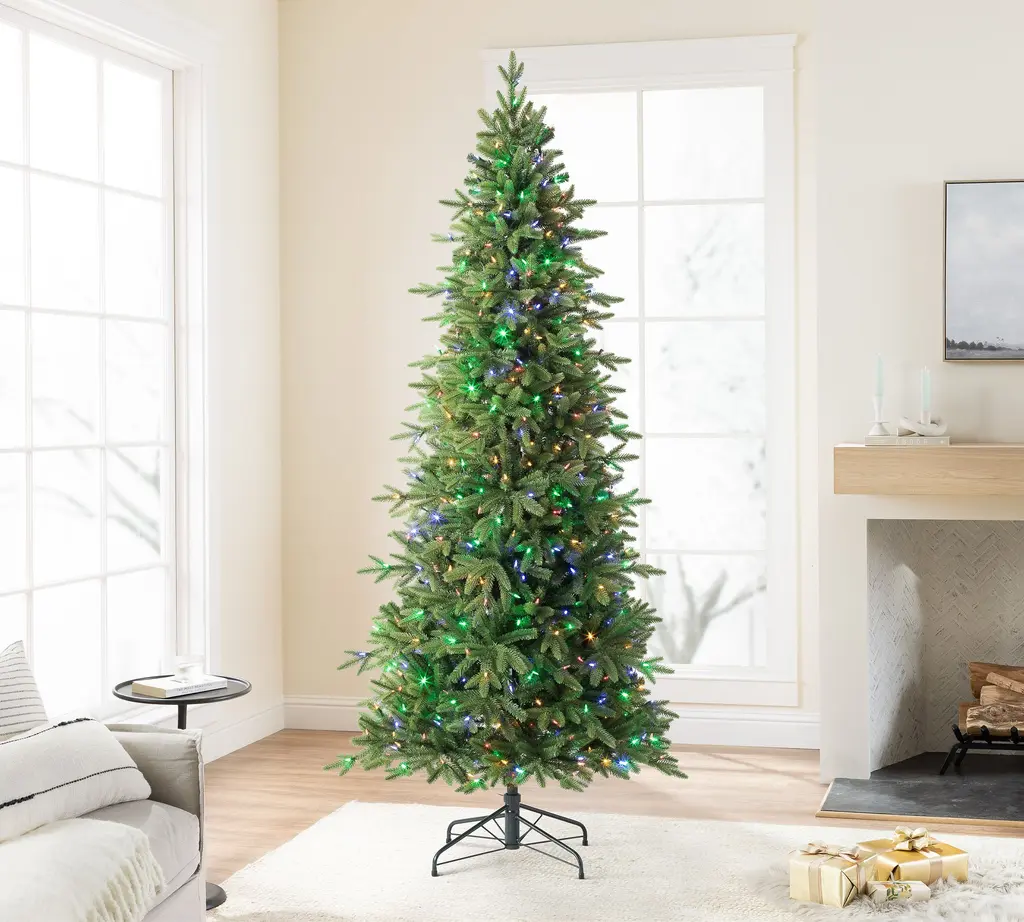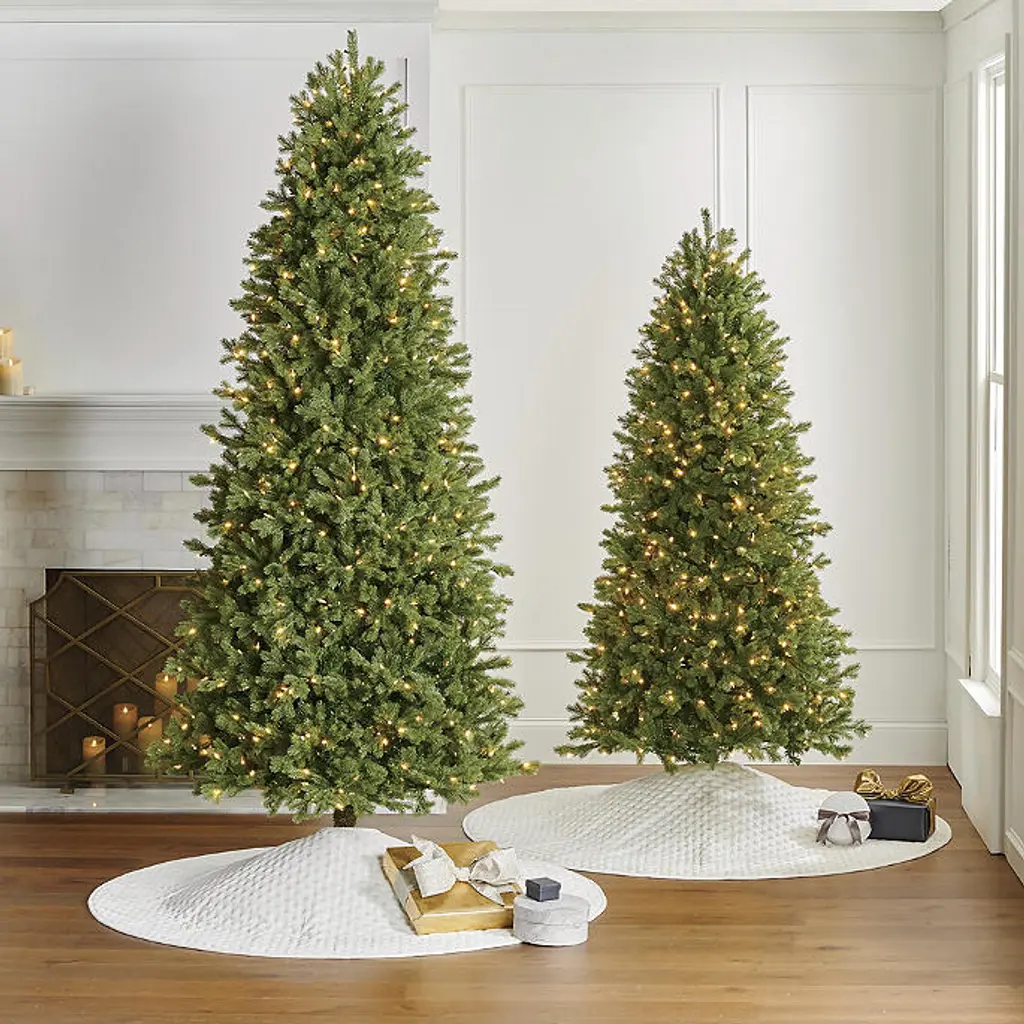 With lifelike foliage and a slender, down-swept silhouette evoking wooded New England, our Kennedy fir sets an enchanted scene. Available either unlit or lit with static or color-changing bulbs, it's guaranteed to come with full boughs ready for you to hang cherished ornaments.