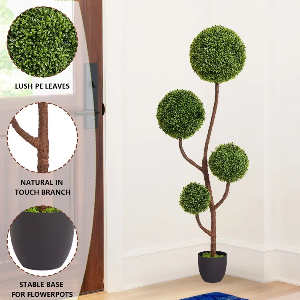 Ktmbdw 5Ft Artificial Boxwood Topiary Ball Tree Spiral Topiaries Greenery Indoor/outdoor Plants