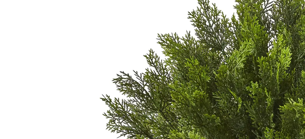 Adorned with intricate stems, this lush Cedar bush is the perfect background foliage for a fireplace floor arrangement or mudroom accent piece. Lifelike, detailed cedar leaves are arranged with adjustable stems. Place with holiday accessories or springtime figurines for year-round seasonal decor. Bush comes with round, black plastic pot.