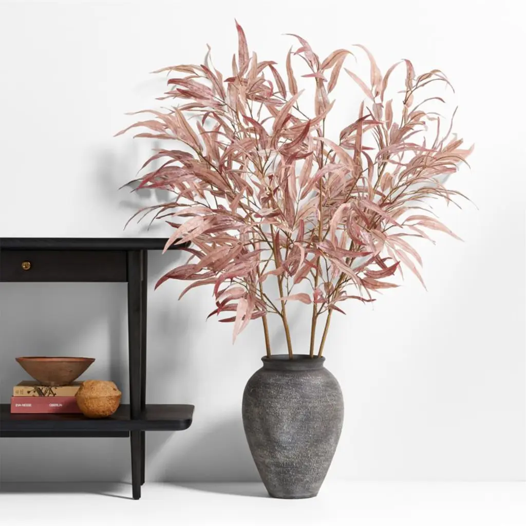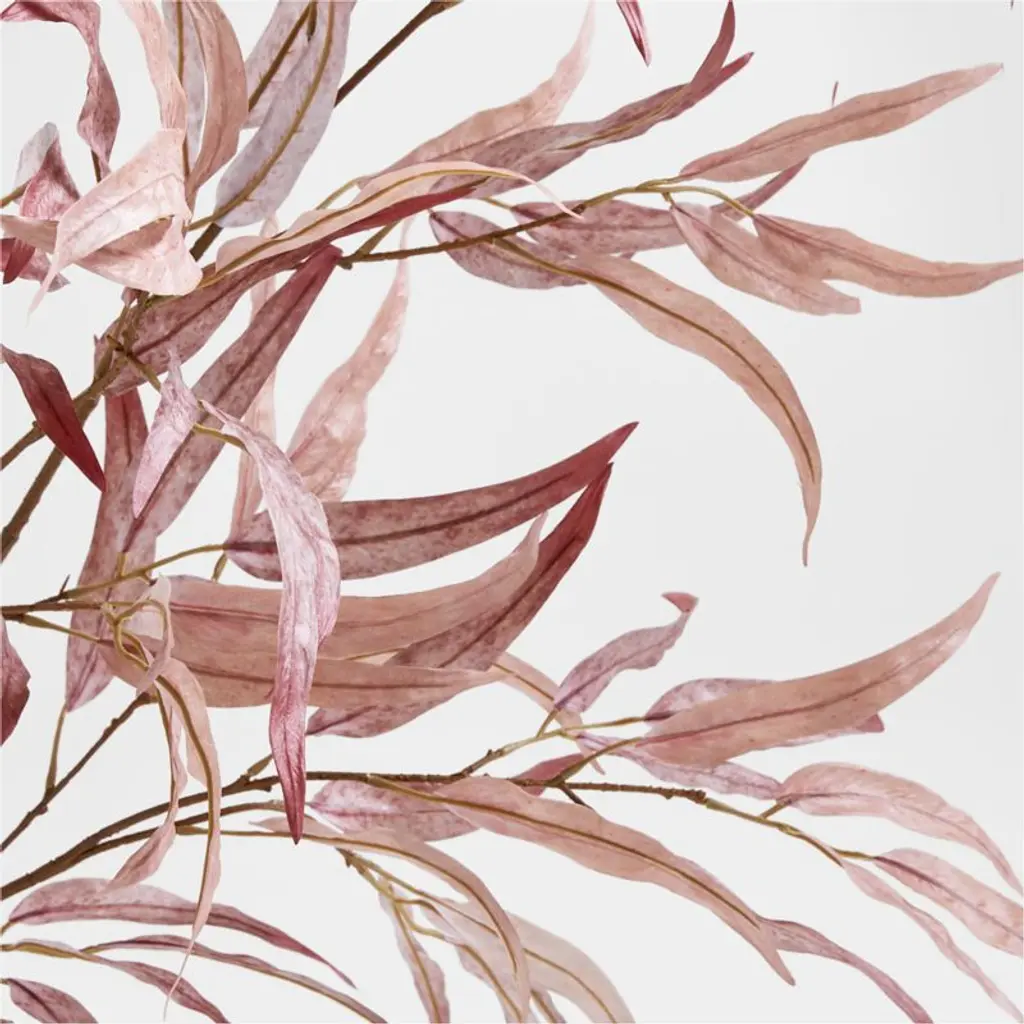 Our lifelike willow eucalyptus stem replicates the plant's distinctive heart-shaped leaves in a palette of soft autumnal hues. Blush, tan and cream replace the silvery green leaves for a seasonal take on this popular botanical. The oversized scale brings the drama, whether the large branch is displayed on its own in a floor vase, grouped in multiples for a lush look or added to a tall arrangement of other faux stems.