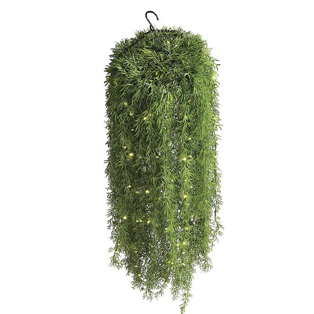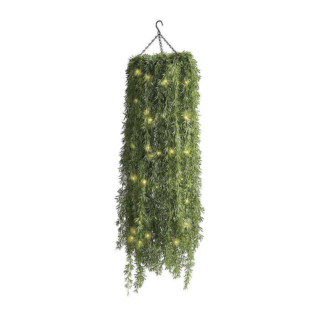A stunning vertical accent, our LED Weeping Fern Hanger features lush, lifelike fronds illuminated by 150 warm white LED lights. Set the lights to glow steadily, twinkle or slowly sparkle. For indoor or covered outdoor use Lifelike faux foliage 150 warm white LED lights with on, slow and twinkle settings Built-in timer option automatically turns the lights on for 8 hours and off for 16 hours Requires three C batteries (not included) Metal hook for hanging Fluff and shape greenery after unpacking Wipe with a soft, dry cloth Imported A Frontgate exclusive. At Frontgate, our primary focus is quality. We guarantee that every product we sell will stand up to the supreme test – our customers' satisfaction. To learn more about our policies, visit our Shipping & Processing, Returns & Exchanges and Warranty & Price Guarantee pages. A stunning vertical accent, our LED Weeping Fern Hanger features lush, lifelike fronds illuminated by 150 warm white LED lights. Set the lights to glow steadily, twinkle or slowly sparkle. For indoor or covered outdoor use Lifelike faux foliage 150 warm white LED lights with on, slow and twinkle settings Built-in timer option automatically turns the lights on for 8 hours and off for 16 hours Requires three C batteries (not included) Metal hook for hanging Fluff and shape greenery after unpacking Wipe with a soft, dry cloth Imported A Frontgate exclusive. At Frontgate, our primary focus is quality. We guarantee that every product we sell will stand up to the supreme test – our customers' satisfaction. To learn more about our policies, visit our Shipping & Processing, Returns & Exchanges and Warranty & Price Guarantee pages.