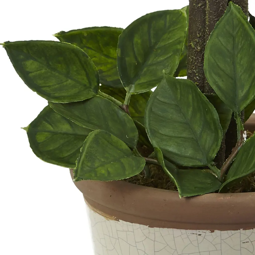 Lemon trees can bloom any time of year, and now you can enjoy their beauty at any time as well, no matter where you live. Standing 18 inches tall in a planter with a crackled finish, this vibrant lifelike topiary is certain to command attention.