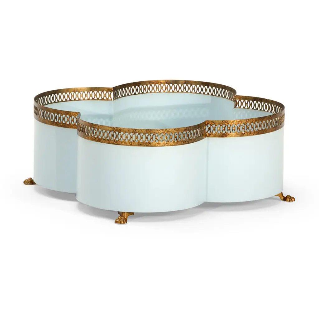 Enhance The Look Of Your Orchids Or Other Floral Arrangements With Our Tracery Cachepot. This Elegant Quatrefoil Planter In Cream With Antique Gold Filigree Trim And Claw Feet Complements Any Traditional Design Style. Spectacular As A Stand Alone Or Paired With Our Porcelain Flower Stems, This Cachepot Is Perfect For A Table In Your Living Area Or Dining Room. (Also Available In Other Sizes And Finishes: Search Tracery).