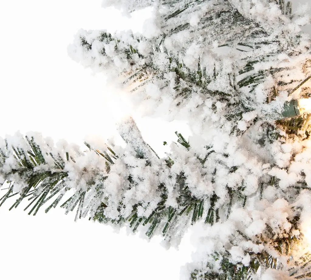 Get the natural look of a white Christmas without all the mess. Our faux pine tree features full foliage to give off the realistic look of a freshly cut tree. Dusted with a blanket of snow, it's perfect for a rustic holiday setting.