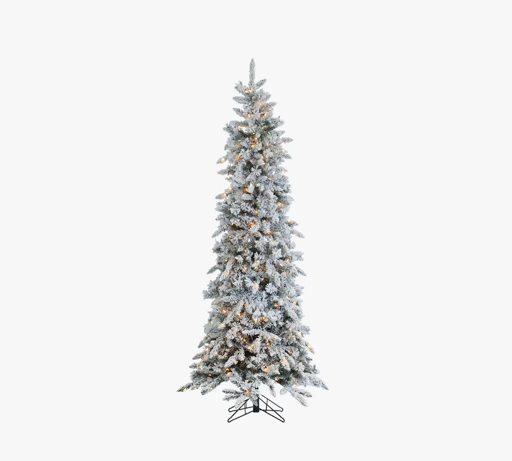 Lit Flocked Pencil Pine Faux Christmas Trees