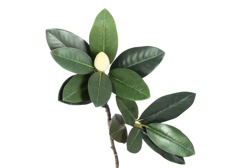 Final Sale Earthy brown tones and deep greens come together in this faux magnolia branch. Its everlasting design features a tall stem with lush, lifelike leaves and a cream flower bud. Style several in a vase or temple jar, lending natural elegance all year long.