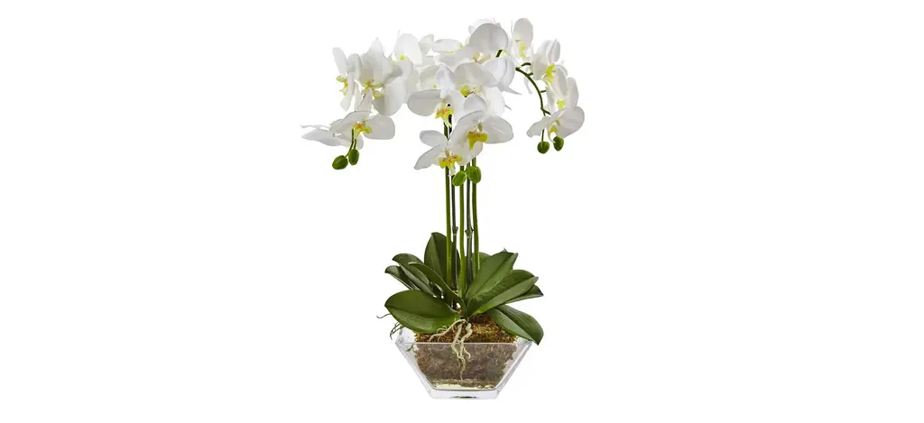 The wide, glossy leaves of the magnolia tree have an allure all their own. Here, they’re clustered together in a lifelike bouquet that simply delights—one leaf at a time. Golden undersides lend depth and dimension to the rich bouquet. Set in a glass cylinder, this uncommon yet sophisticated arrangement makes a stunning tabletop accent that looks fresh year-round.