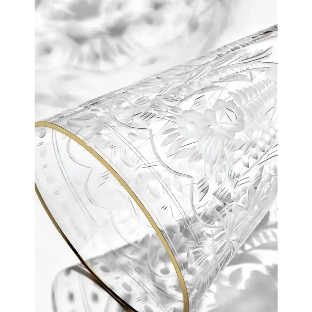 Maharani Clear Lead-Free Crystal, Cut, 24 Gold (Thin Line), Engraving Goblet Liqueur 50 Ml