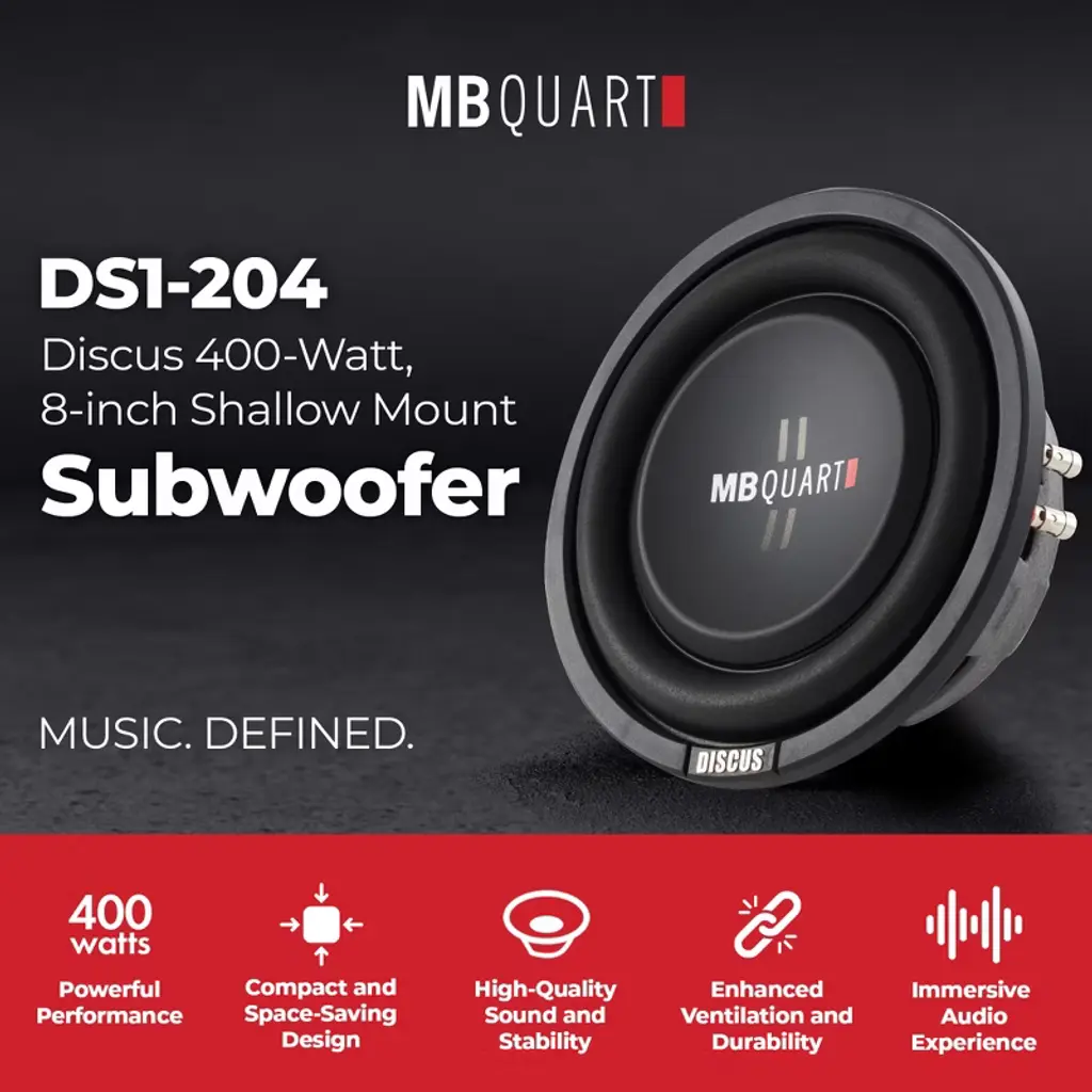 Mb Quart Ds1-204 8 Inch 400 Watt Max 200 Watt Rms 4 Ohm Dual Voice Coil, Shallow Slim Subwoofer For Car Audio Sound System, Single Speaker