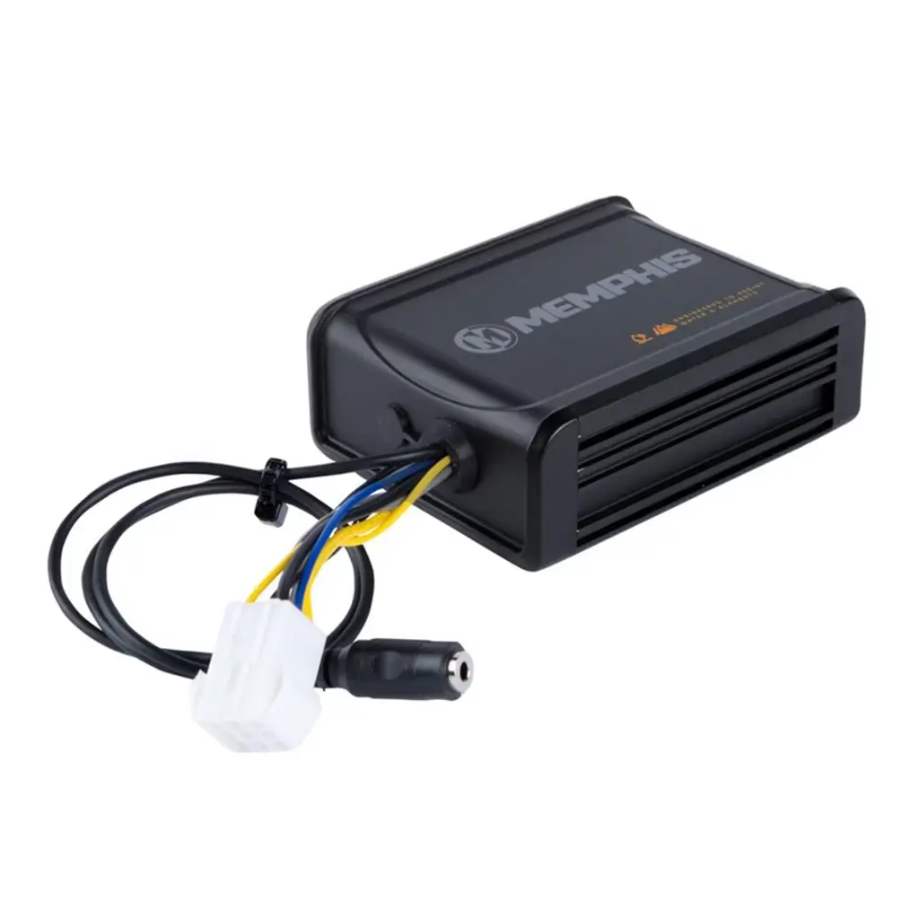 Memphis Xtreme Audio clamp mount solutions are simple but powerful audio upgrades for your side-by-side, motorcycle or powersports machine. Rugged soundbars, powerful compression horn can style speakers and bolt on amplified powersports systems are just a few of the ways you can add huge audio power to your powersports machine. Bring huge sound to your UTV, ATV, Motorcycle or any type of all-weather machine with these Bluetooth equipped bullet style powersports speakers and amplifier kit. The kit includes 2 chrome bullet-style high power speakers being pushed by a true marine grade powerful 2-channel 50(w) Memphis Audio amplifier. An included MXABTR Bluetooth controller is included in the set allowing you to control your audio wirelessly from your cell phone or through the included Bluetooth controllers interface. Each speaker features a 15oz magnet, far superior to similar products in their class allowing these speakers to produce exceptional low-end response. Mounting options include handlebar mounting brackets capable of fitting most standard bar sizes as well as post mount options for direct bolt-on applications making these kits extremely versatile and easy to install. Style is key when outfitting your toys, these speakers will not disappoint. The elegant chrome finish and smooth lines will complement virtually any machine. These speakers are also available in a matte black (MXABMB2). Features: • 2-Channel 50 Watt Memphis Amplifier • 2 Chrome bullet-style speakers • MXABTR Bluetooth controller included • 2 Clamp style bar mounts (Chrome finish) • 2 Post mounts (Chrome finish) • Water resistant wiring harness Specifications: • Size (in) 3" • Impedance 4Ω • Clamp Fit (in) 1.25" • Warranty 1 YEAR • Grill Included Y